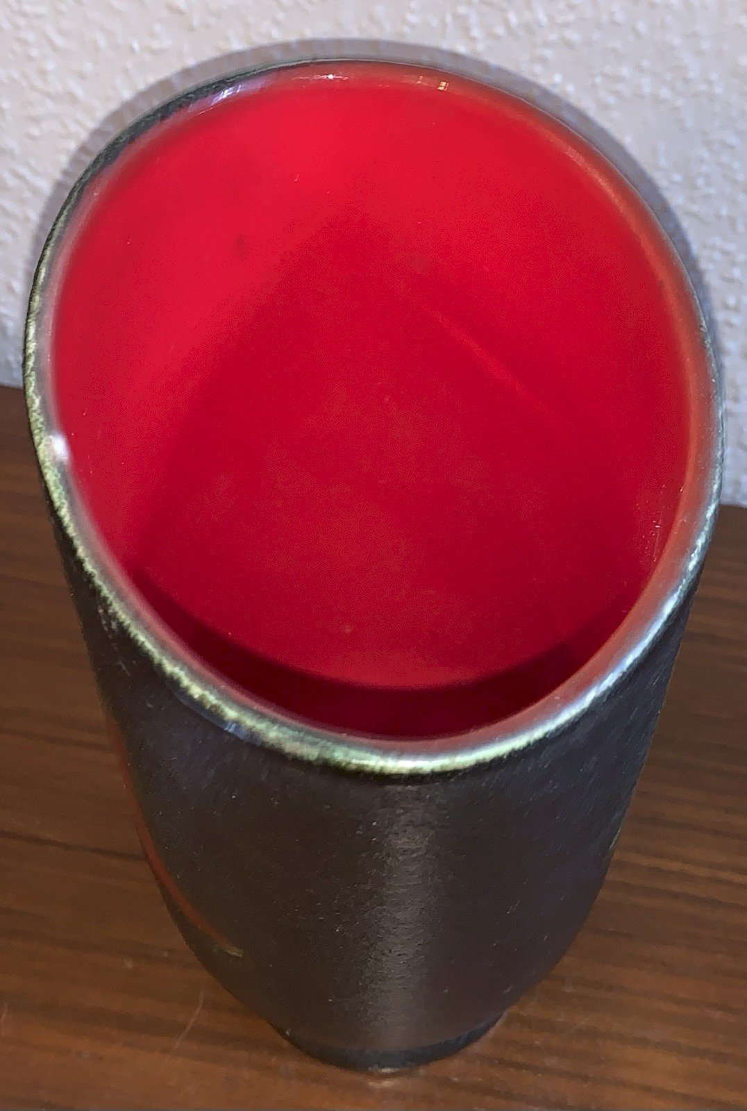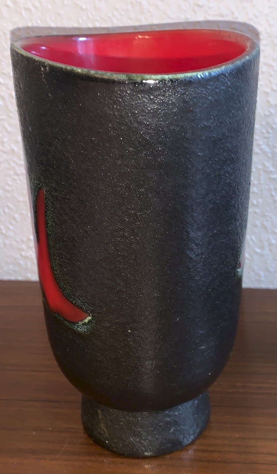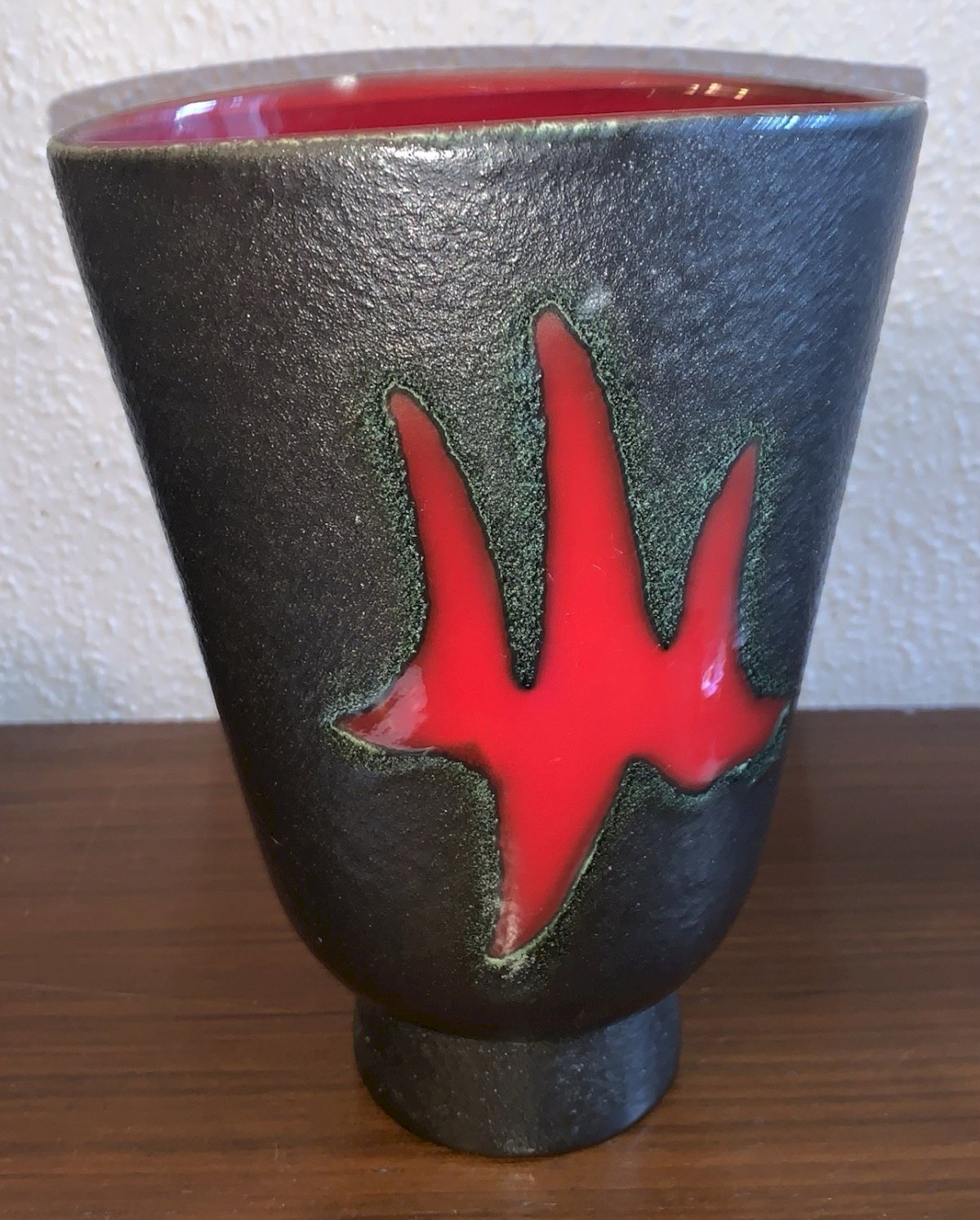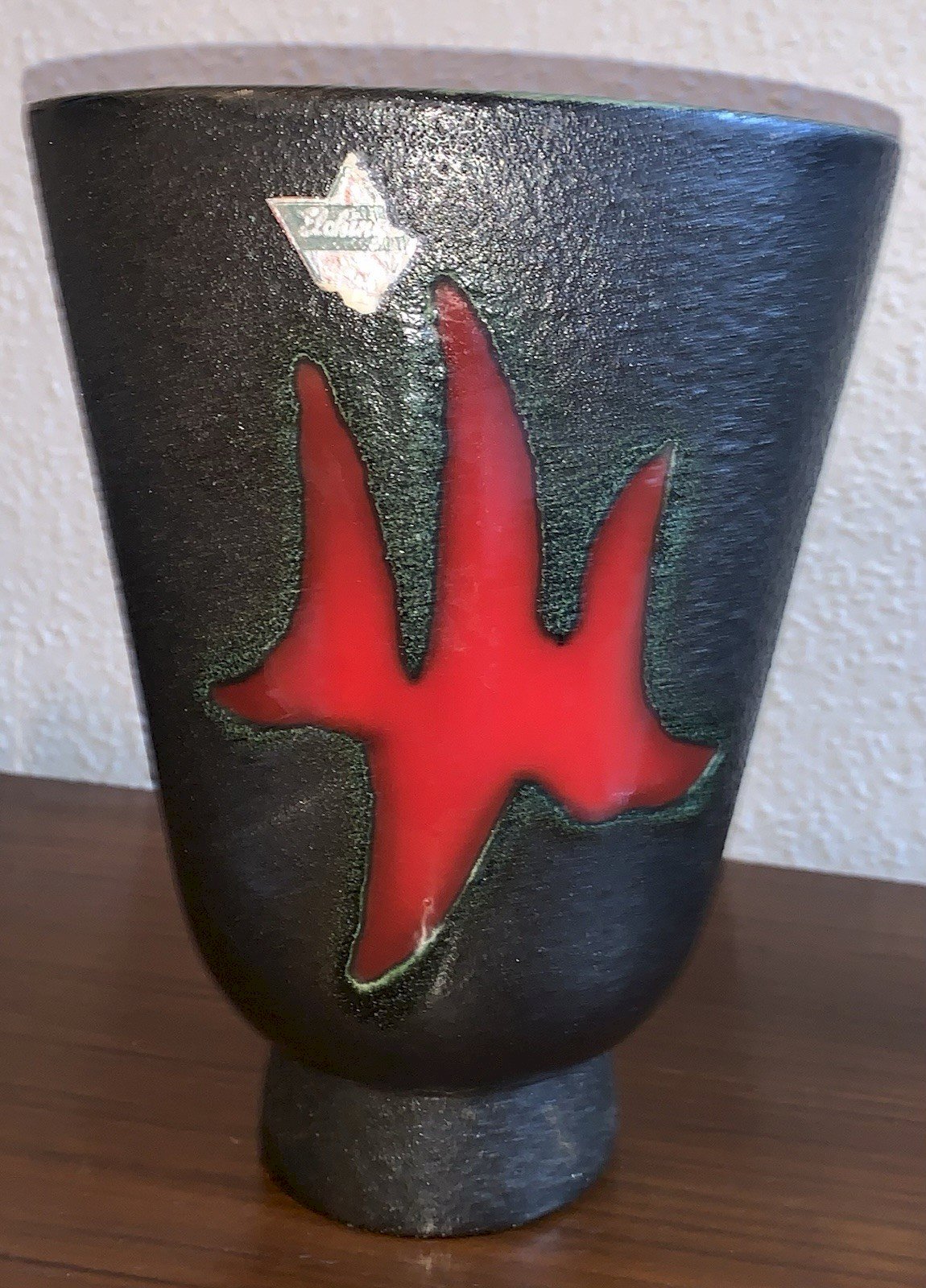 vase en céramique bicolore rouge noir Elchinger 1950's