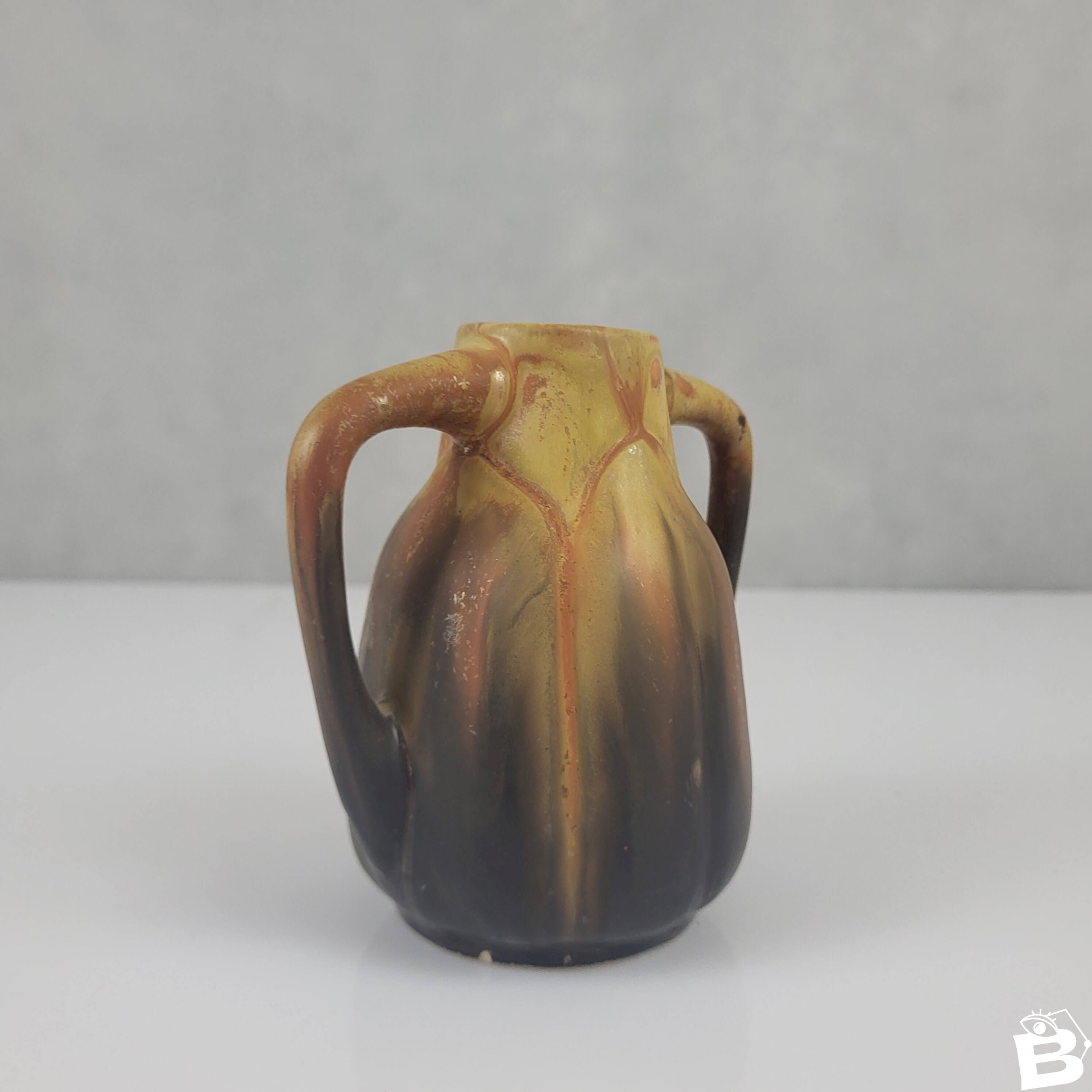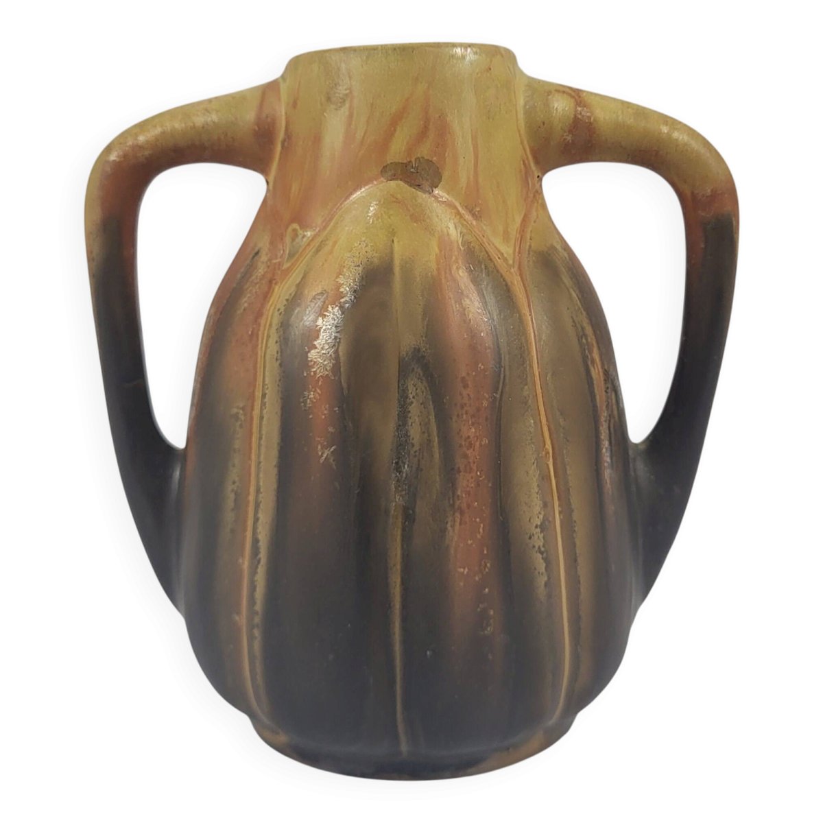 Vase en grès signé Gilbert Méténier Art déco.Hauteur 11, 5 cm.Largeur avec anses 11 cm.En bon état / traces d'usage et d'ancienneté minimes.