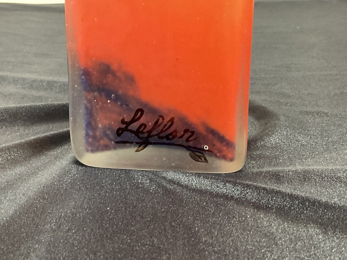 Vase en pâte de verre marmoréen  signé LAFLOR ( (DLG = Dans le Goût ) MULLER Frères Lunéville ) Hauteur : 12,5 cm Marque:leflore Pays de fabrication:France