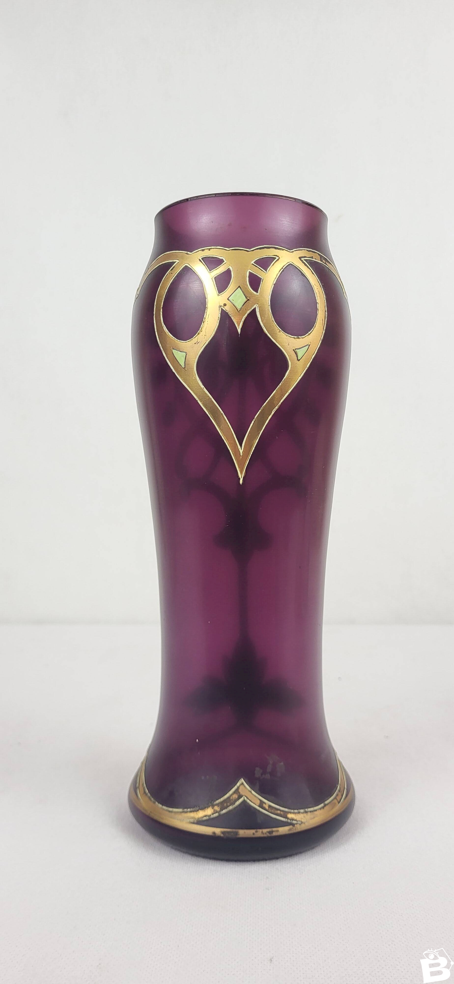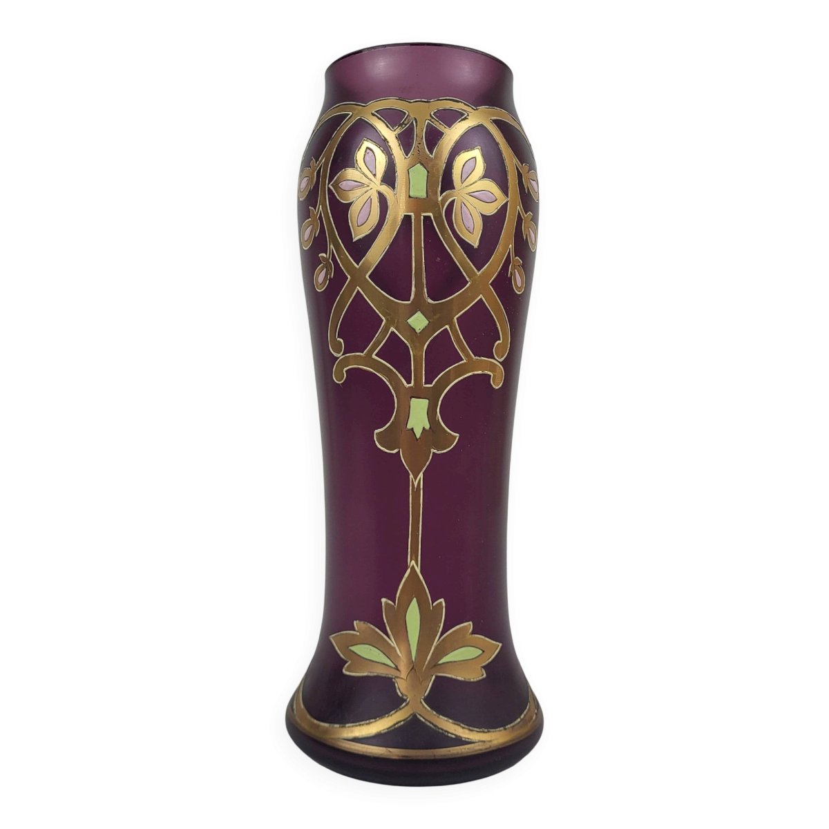 Vase en verre émaillé vers 1900Hauteur 28 cmDiamètre 9,5 cmDiamètre au col 7,8 cmEn bon état avec traces d'usage et d'ancienneté minimes.Emballage soigné et livraison rapide.