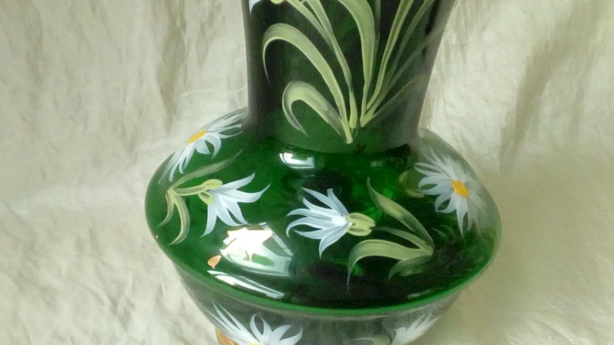 TRES BEAU VASE EN VERRE ÉMAILLE VERRERIE DE MONACO MONTE CARLO HAUTEUR 22 cm DIAMÈTRE 13 cm EN BON ÉTAT Marque:MONACO Pays d'origine:Monaco