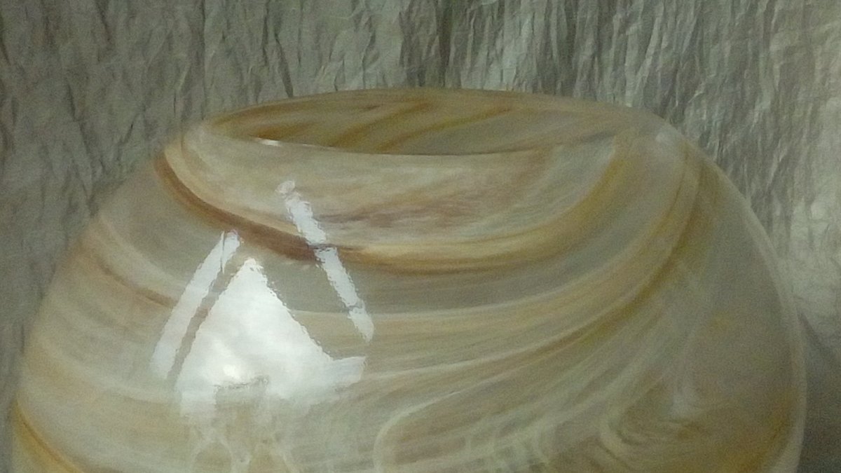 TRES BEAU VASE EN VERRE VERRERIE DE LA ROCHERE FRANCE EFFET MARBRÉ HAUTEUR 20 cm LONGUEUR 20 cm LARGEUR 12 cm EN BON ETAT Marque:la rochere Pays d'origine:France