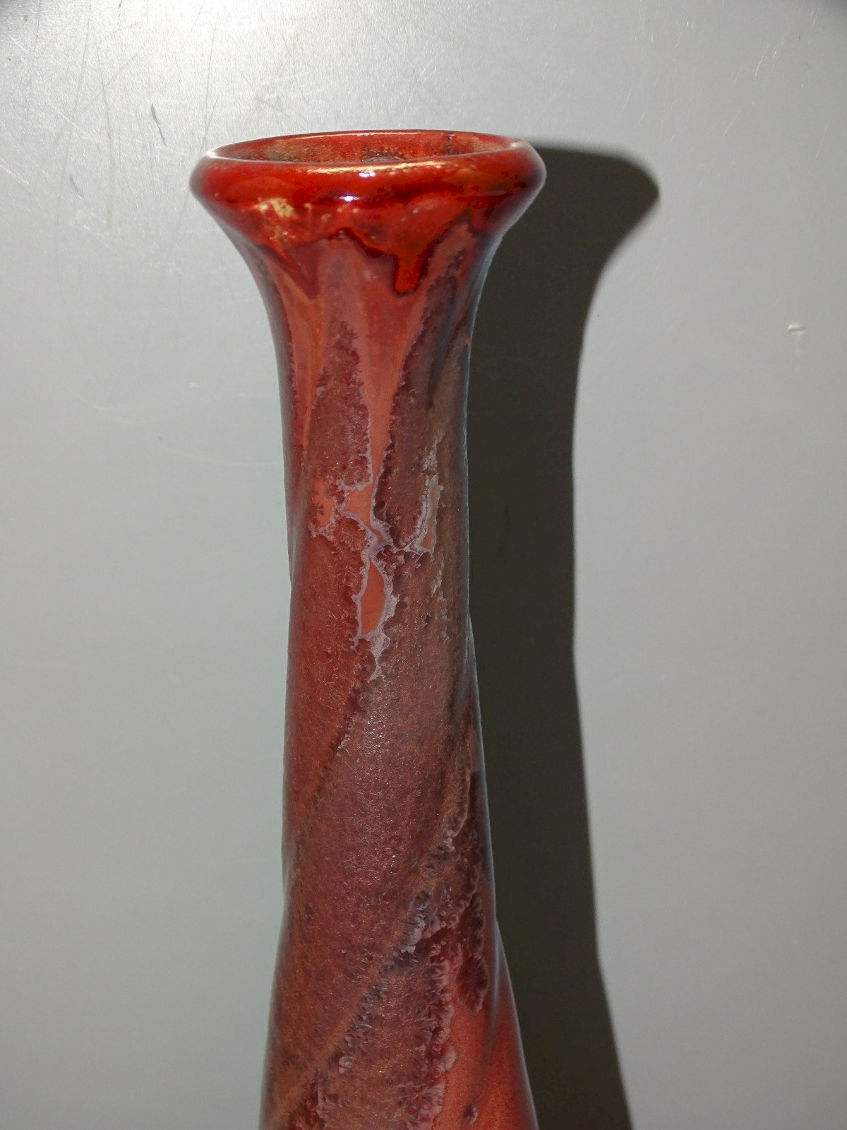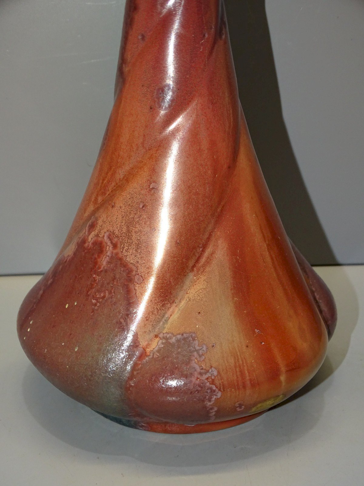 Joli vase grès col torsadé à couleur dominante Rouge avec métallisations - une marque en creux à déchiffrer ( peut-être Pierrefonds mais sous réserve ) et N° 597   (photos) - pur jus de trouvailles, sorti de grenier -  Réf. 1V250703/165 Hauteur 32,3 cm - Diamètre col 5,3 cm - Diamètre max 15 cm - Poids 1,250 kg     Pour me contacter mon adresse mail : EXPEDITION POSSIBLE EN MONDIAL RELAY ou COLISSIMO sur demande TRES BON EMBALLAGE GARANTI     MERCI de BIEN REGARDER TOUTES les PHOTOS car ELLES FONT PARTIE INTEGRANTE de la DESCRIPTION et PERMETTENT de VOIR l'OBJET AU MIEUX  avec SES PETITS DEFAUTS EVENTUELS -