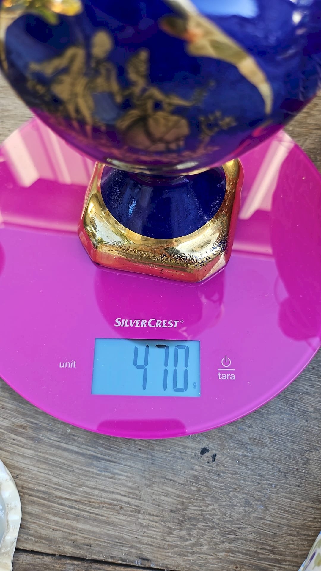 Vase en porcelaine de Limoges, bleu cobalt et or.