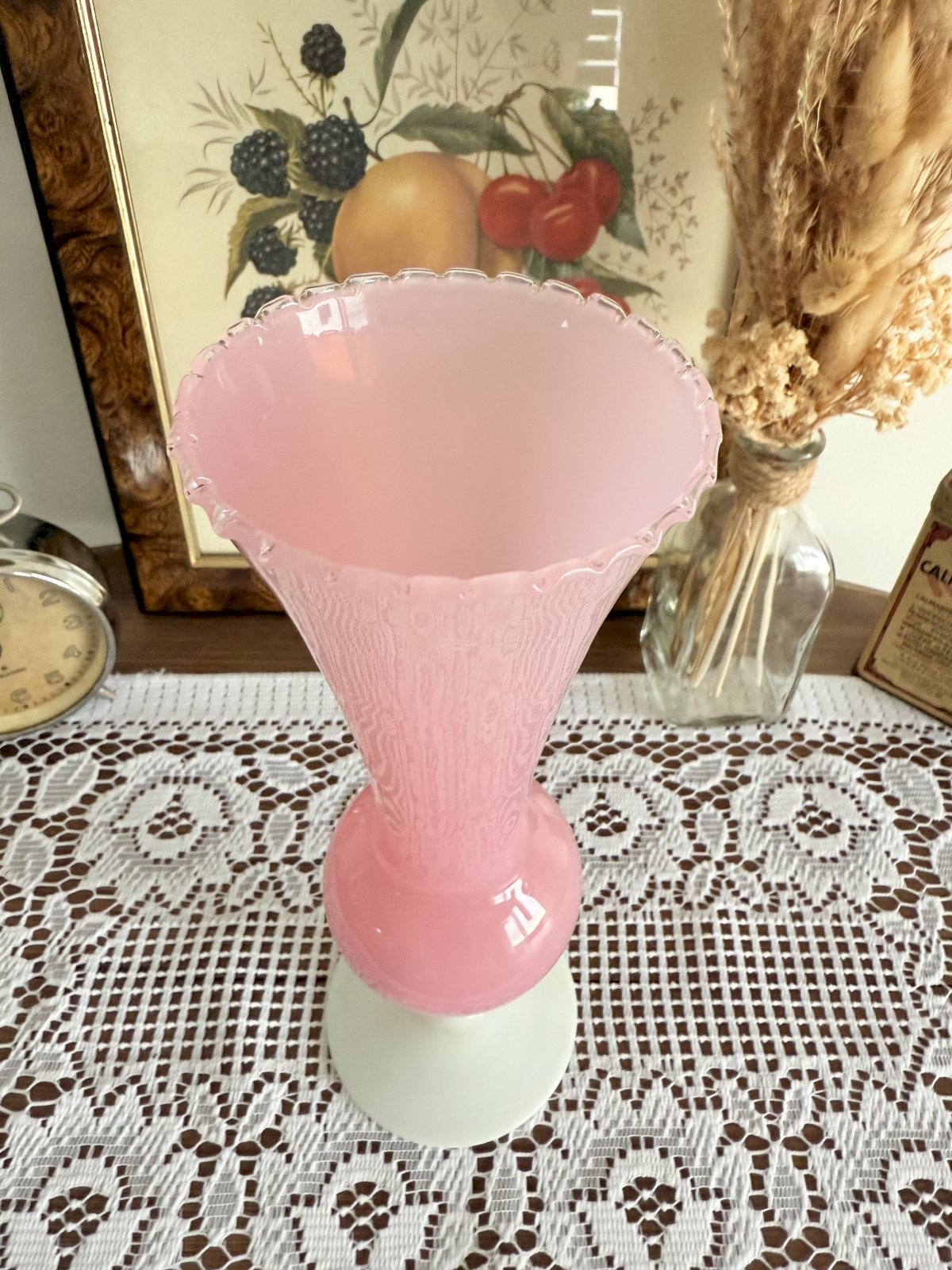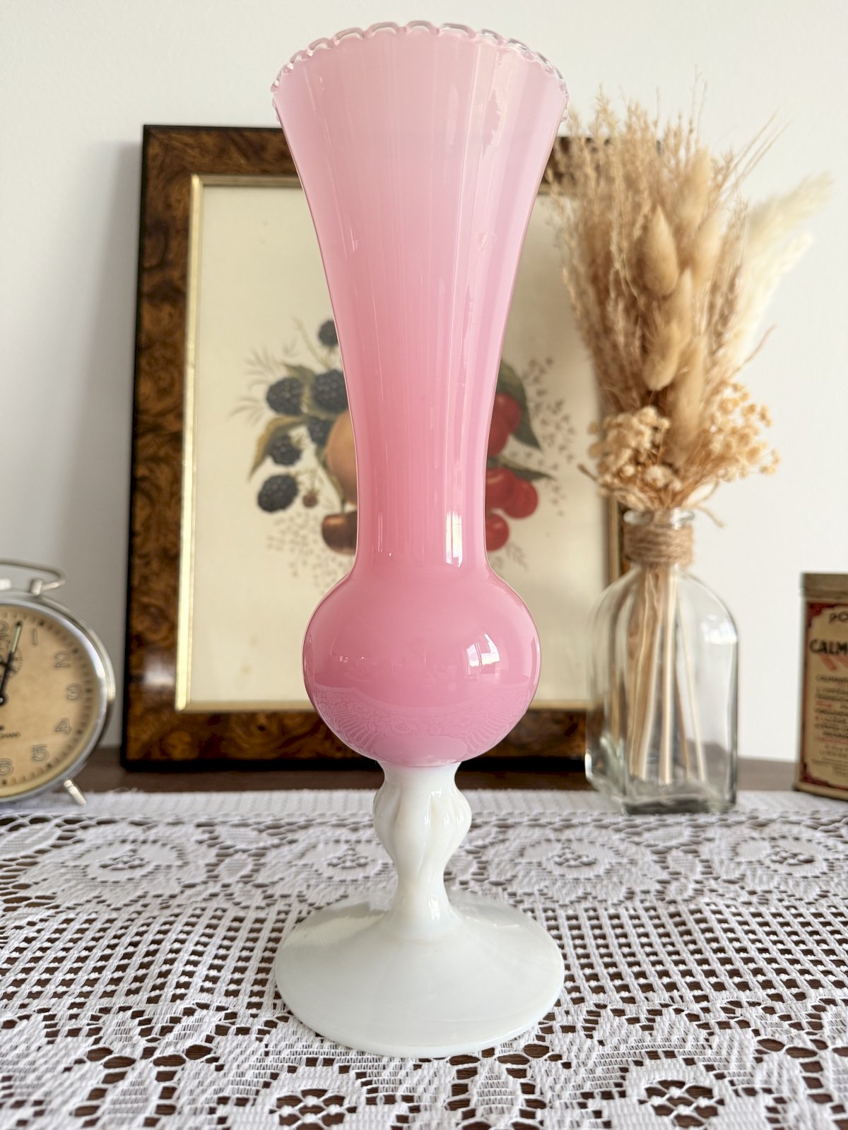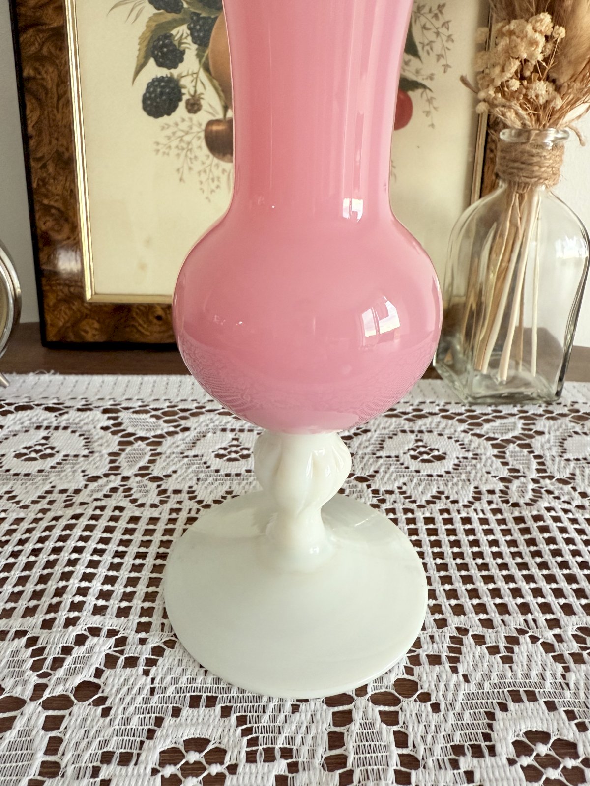 Verre sur pied en opaline rose et blanche Hauteur : 200mm Diamètre : 90mm