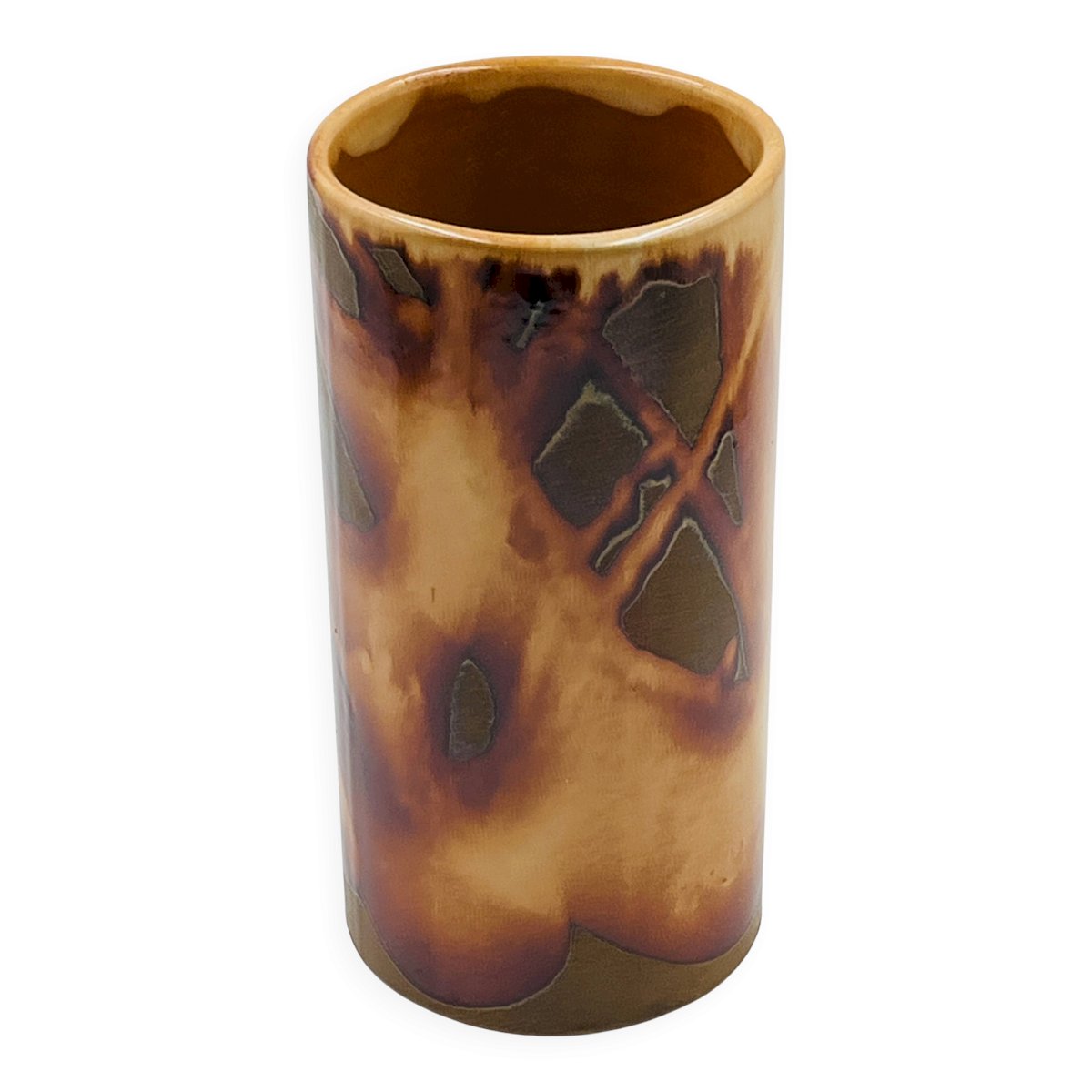 Ses teintes chaudes de brun et d'orange évoquent les riches tons d'un coucher de soleil toscan, ce qui en fait une pièce maîtresse exquise pour n'importe quelle pièce.Fabriqué en céramique de haute qualité, ce vase présente un motif émaillé unique qui ajoute profondeur et caractère.Sa forme cylindrique est à la fois classique et polyvalente, idéale pour exposer des fleurs fraîches ou comme pièce décorative.Son style vintage apporte une touche de nostalgie, parfaite pour les amateurs de design intemporel.Invitez un peu d'Italie chez vous et laissez ce vase susciter la conversation.