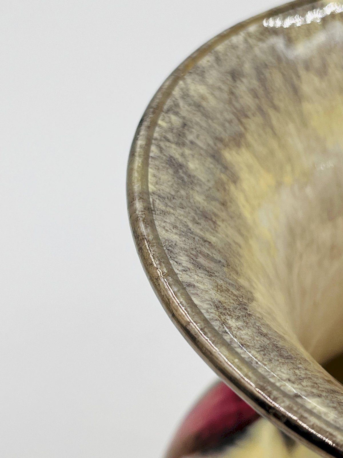 Son émail multicolore et vibrant présente un mélange captivant de jaune, de rouge et de noir, créant un impact visuel saisissant qui sublimera n'importe quel espace.