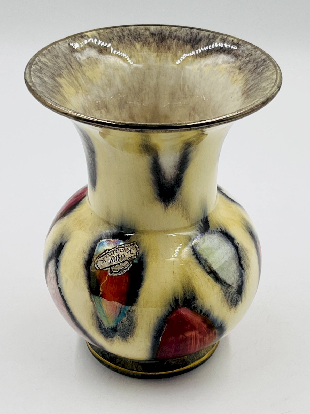 *JOLI VASE CERAMIQUE signée BEQUET jolie prise de main ANTILOPE Dorée 1950 déco