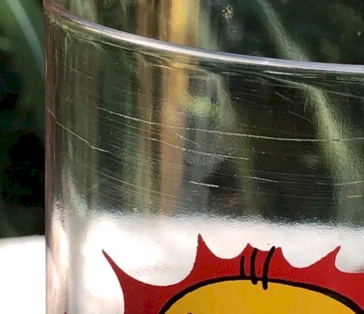 Verre rétro vintage Titi ( 1974 ) en très bon état de conservation , brillance impeccable , quelques rayures sur le haut du verre voir la dernière photo