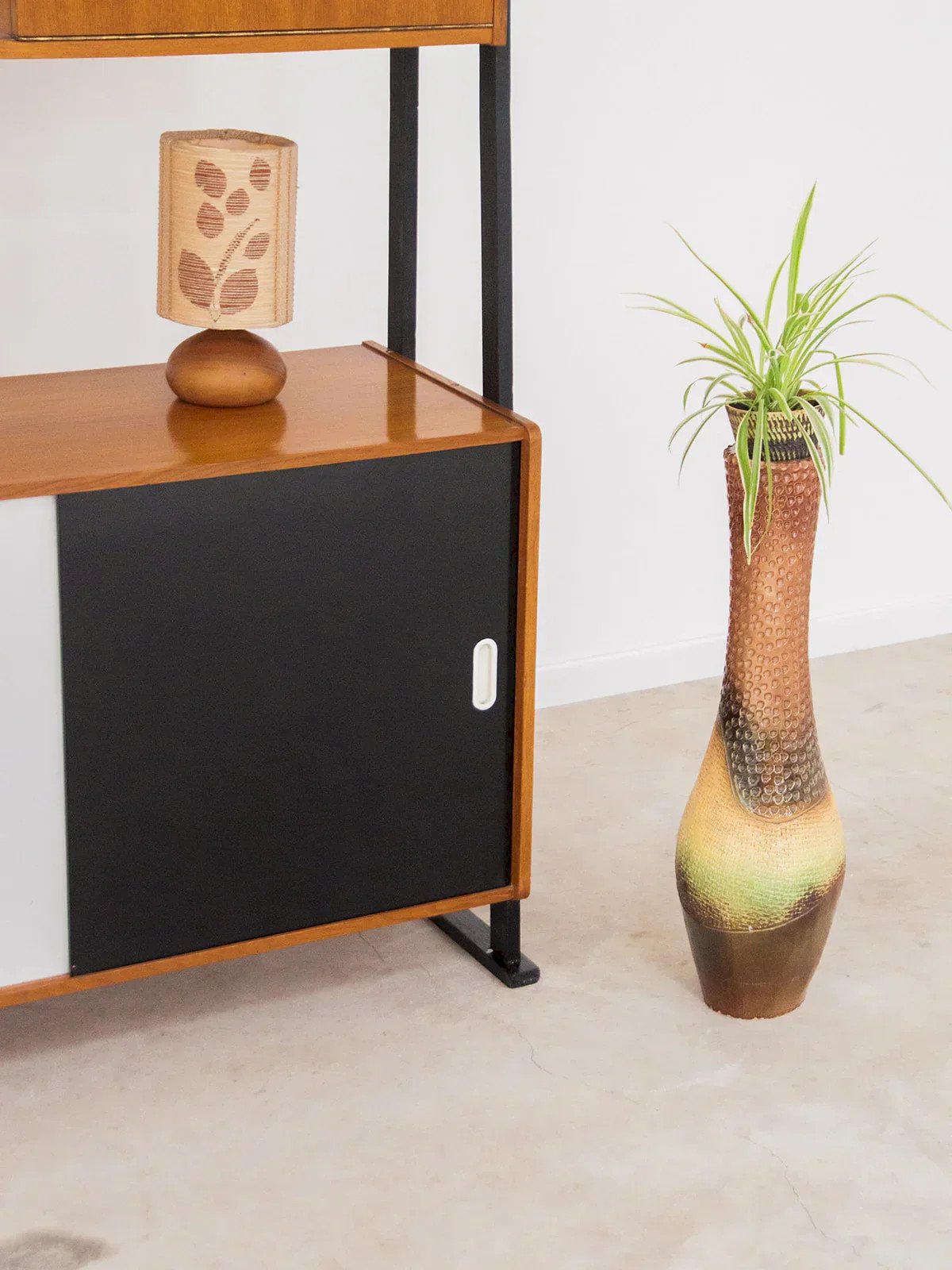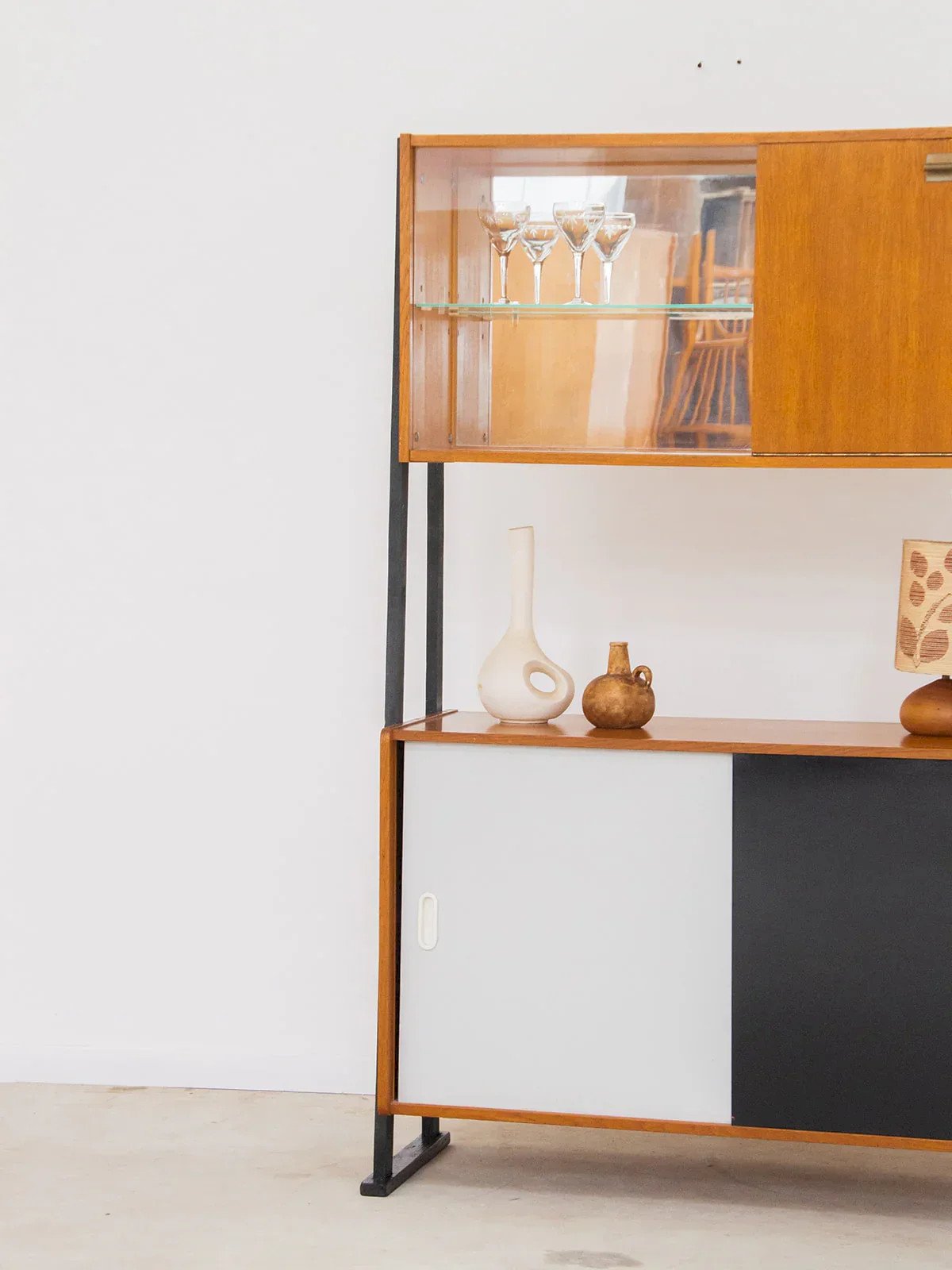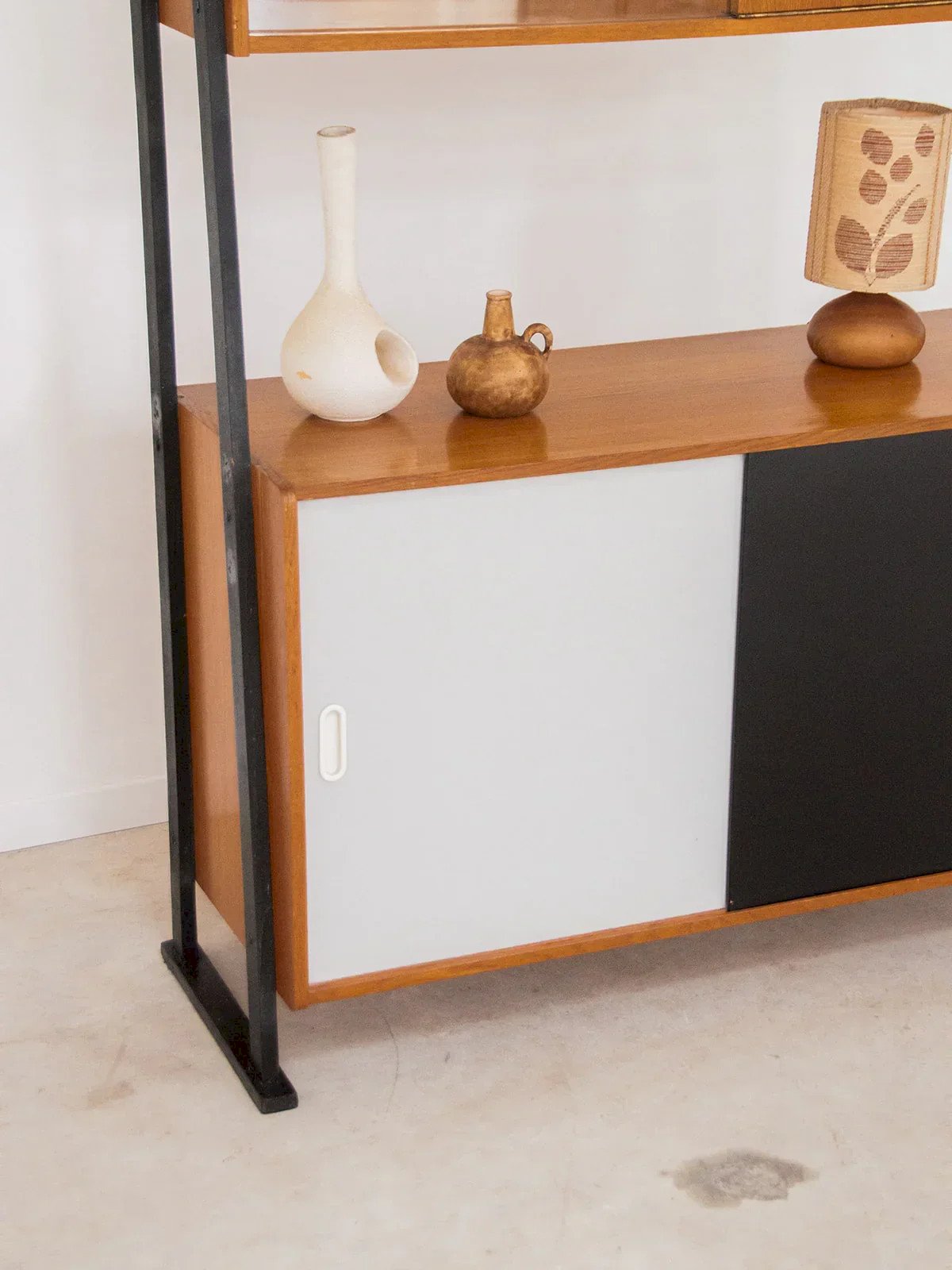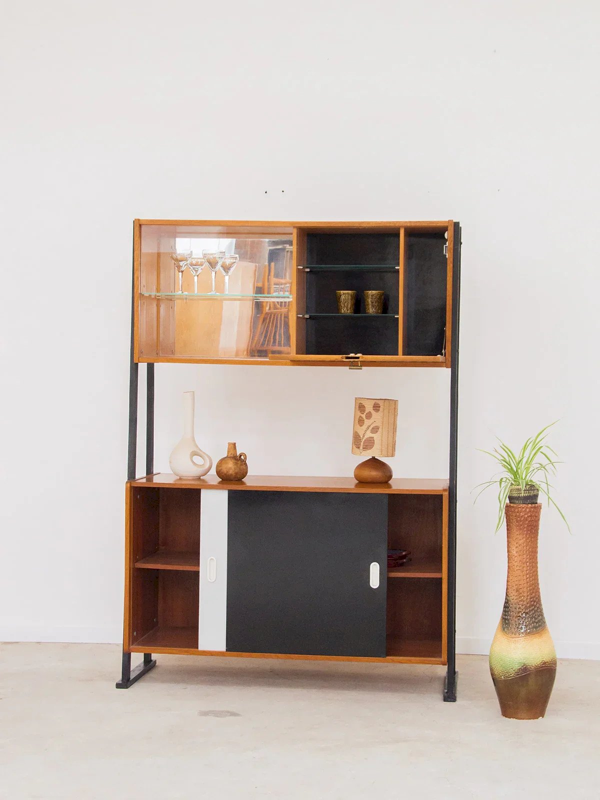 Alerte pépite ! Offrez vous ce grand meuble de rangement, alliant élégance et fonctionnalité. Doté d'étagères hautes et de placards coulissants bas, il offre un espace de stockage optimal pour votre intérieur. Les étagères en verre laissent entrevoir vos objets avec style, tandis que la structure en métal noir ajoute une touche moderne et sophistiquée. Idéal pour ranger vos bouteilles et bien plus encore, ce meuble s'intègre parfaitement dans tous les espaces de vie. Longueur : 110 cm Largeur : 30 cm Hauteur : 162 cm État:Occasion: Objet ayant été utilisé. Objet présentant quelques marques d'usure superficielle, ...Occasion: Objet ayant été utilisé. Objet présentant quelques marques d'usure superficielle, entièrement opérationnel et fonctionnant correctement. Il peut s'agir d'un modèle de démonstration ou d'un objet retourné en magasin après une courte période d'utilisation. les éventuelles imperfections. Marque:Debongout Type:Produit chiné Matériau:Bois Style:Contemporain Personnalisé:Vaisseliers et vitrines