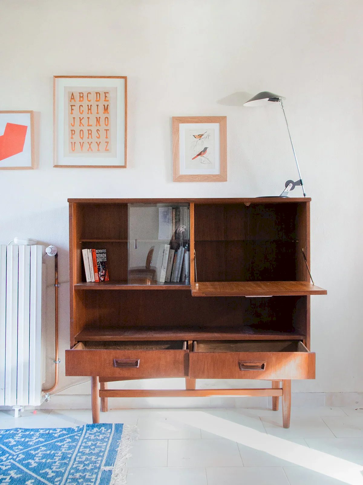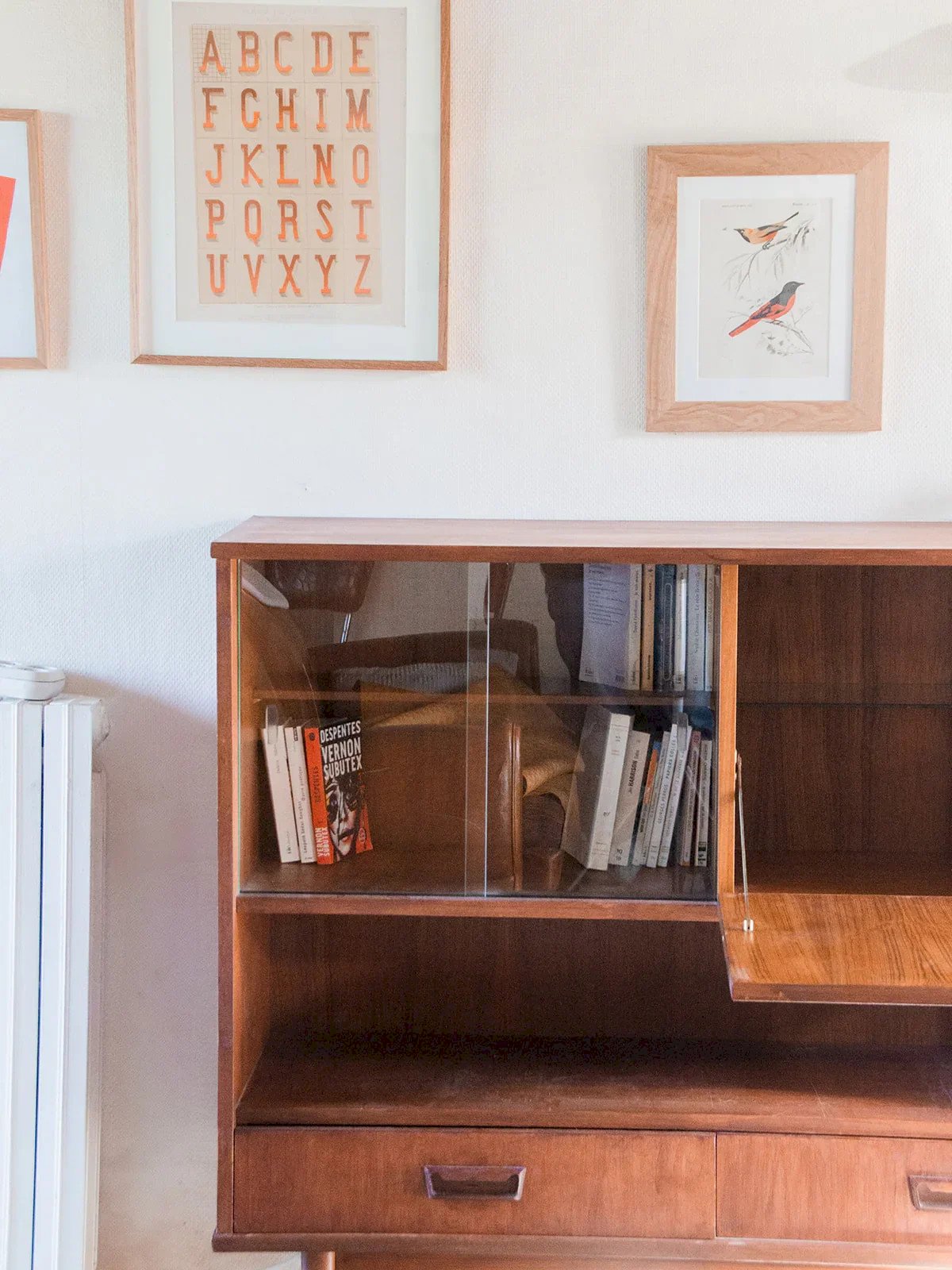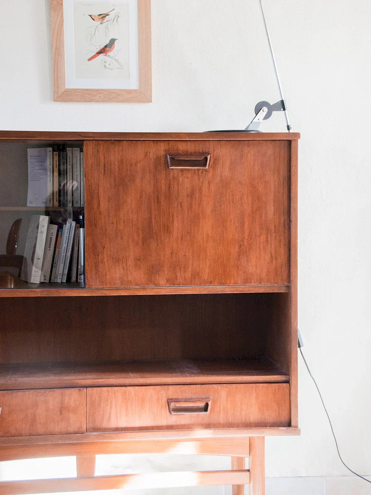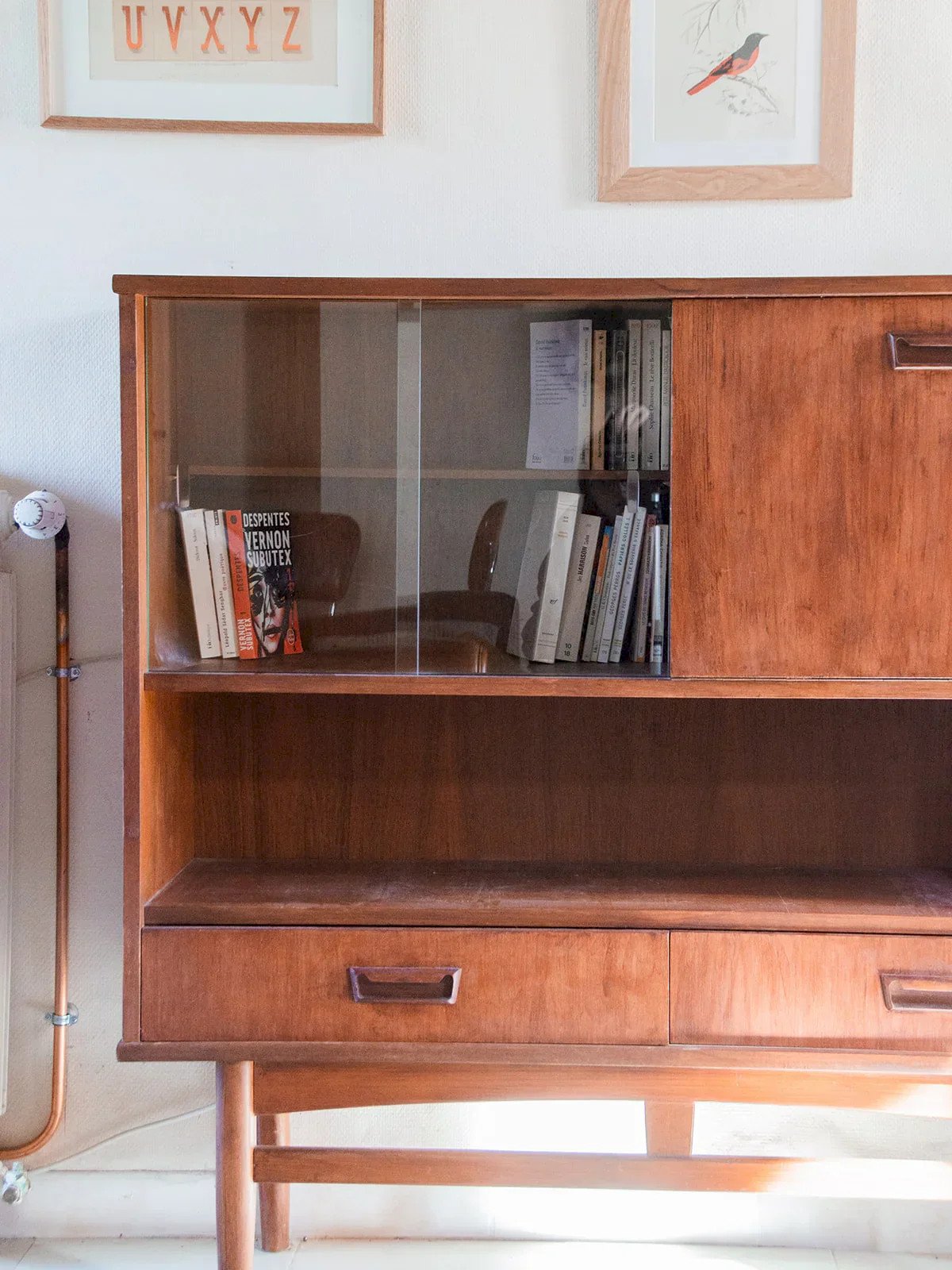 Découvrez ce très beau buffet en bois foncé, alliant élégance et fonctionnalité. Il se distingue par ses deux tiroirs inférieurs, idéaux pour le rangement, ainsi qu'un côté secrétaire pour un espace de travail pratique. Sa verrière coulissante, accompagnée d'une grande case, offre un espace de présentation idéal pour vos objets précieux. Ce meuble s'intégrera parfaitement à votre intérieur, mariant style et utilité. Longueur : 123 cm Largeur : 39,5 cm Hauteur : 117,5 cm Largeur secrétaire ouvert : 76,5 cm État:Occasion: Objet ayant été utilisé. Objet présentant quelques marques d'usure superficielle, ...Occasion: Objet ayant été utilisé. Objet présentant quelques marques d'usure superficielle, entièrement opérationnel et fonctionnant correctement. Il peut s'agir d'un modèle de démonstration ou d'un objet retourné en magasin après une courte période d'utilisation. les éventuelles imperfections. Marque:Debongout Type:Produit chiné Matériau:Bois Style:Contemporain Personnalisé:Vaisseliers et vitrines