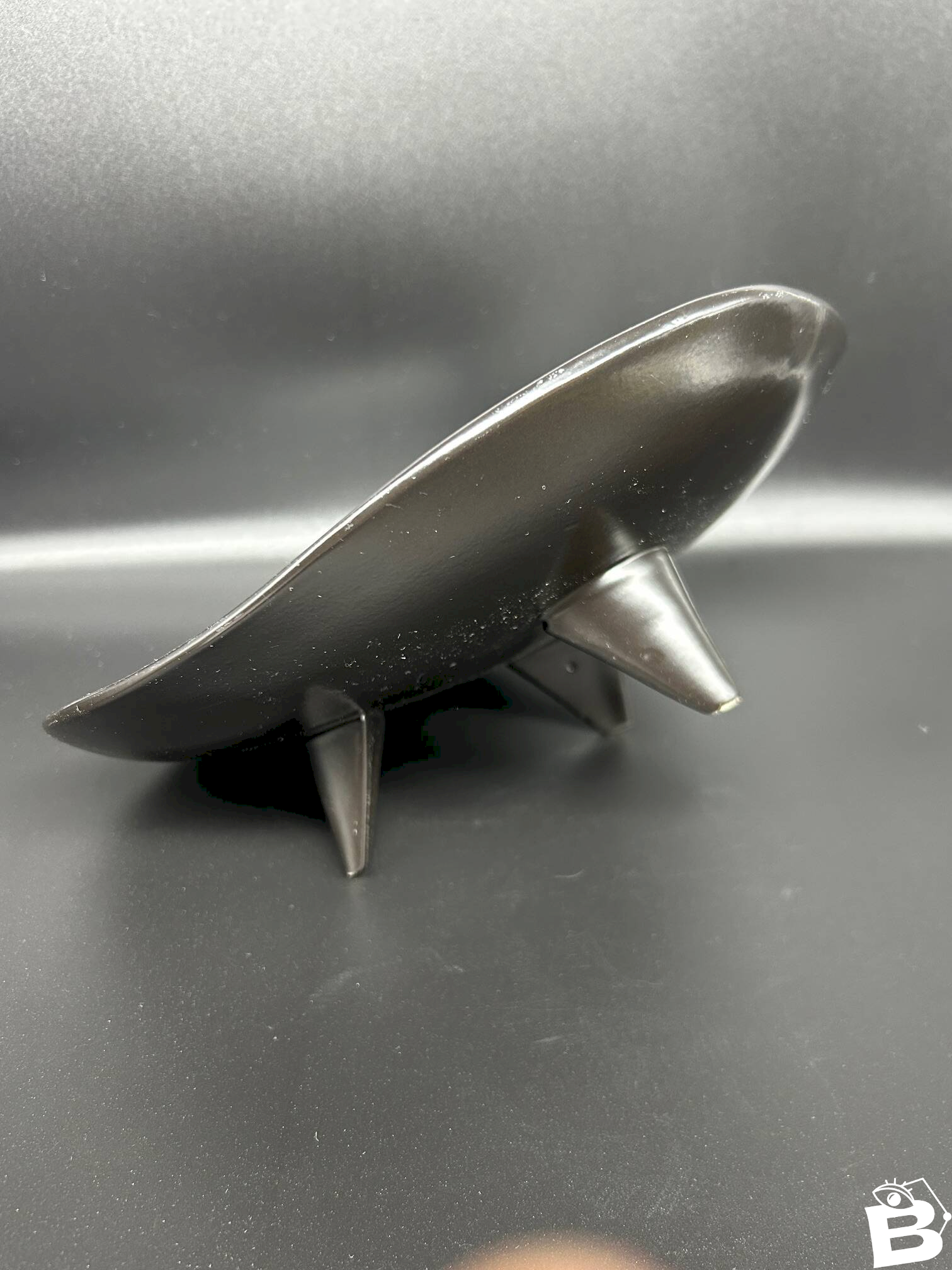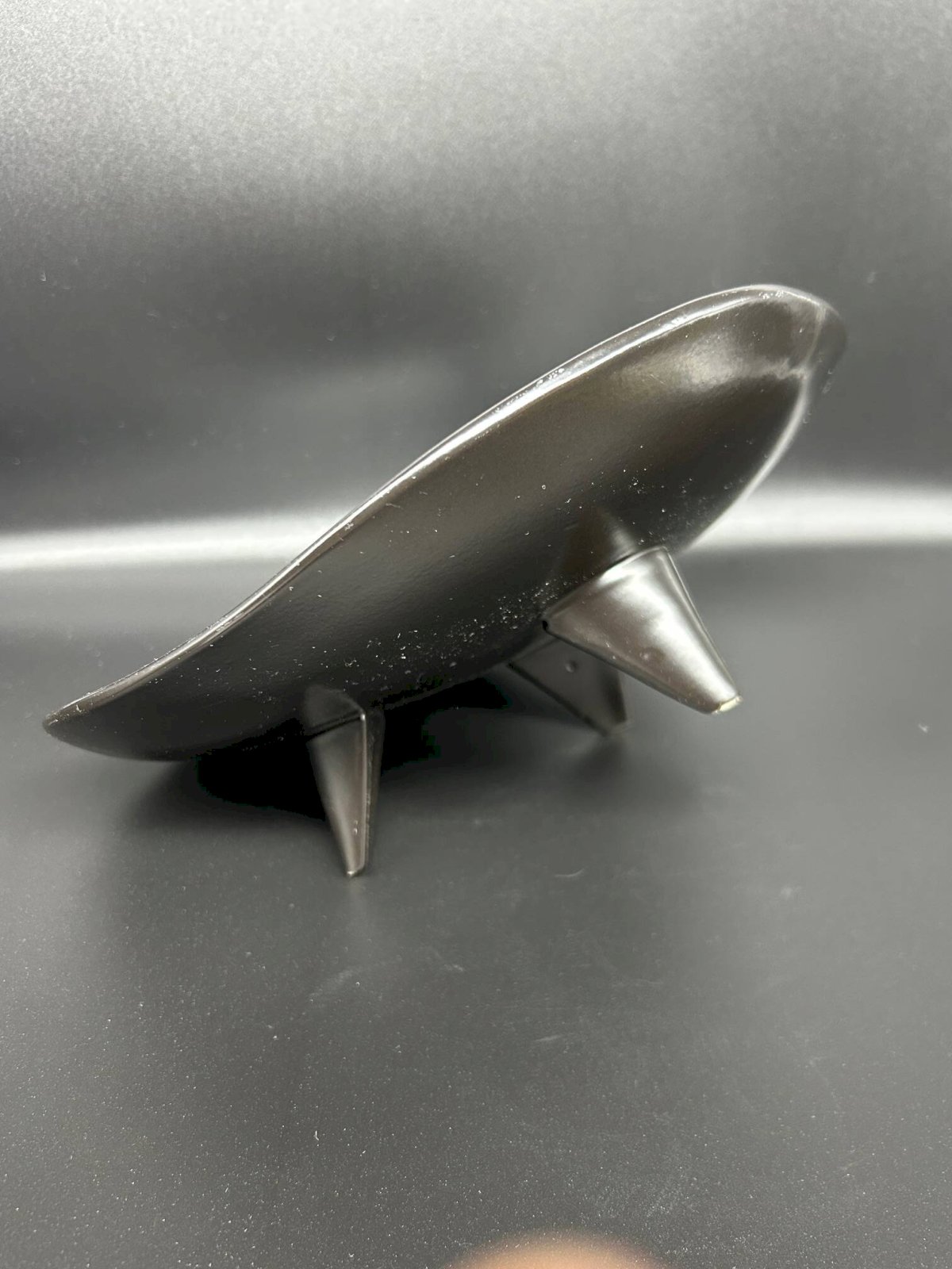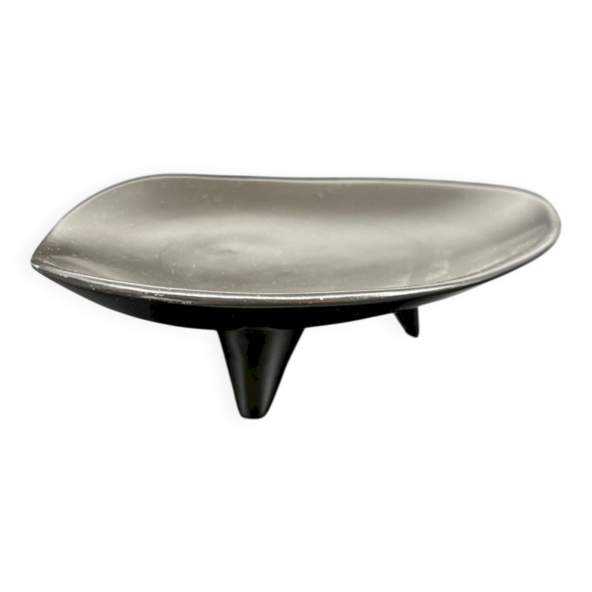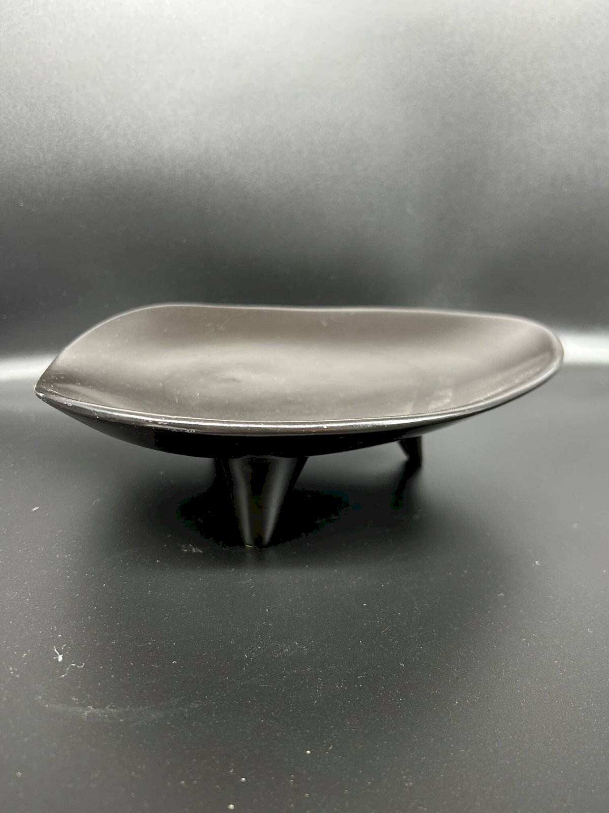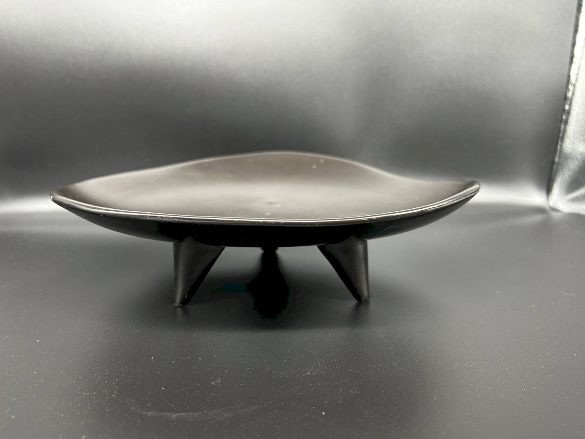 Vide poche en céramique noire émaillée reposant sur trois pieds triangulaires, années 50.