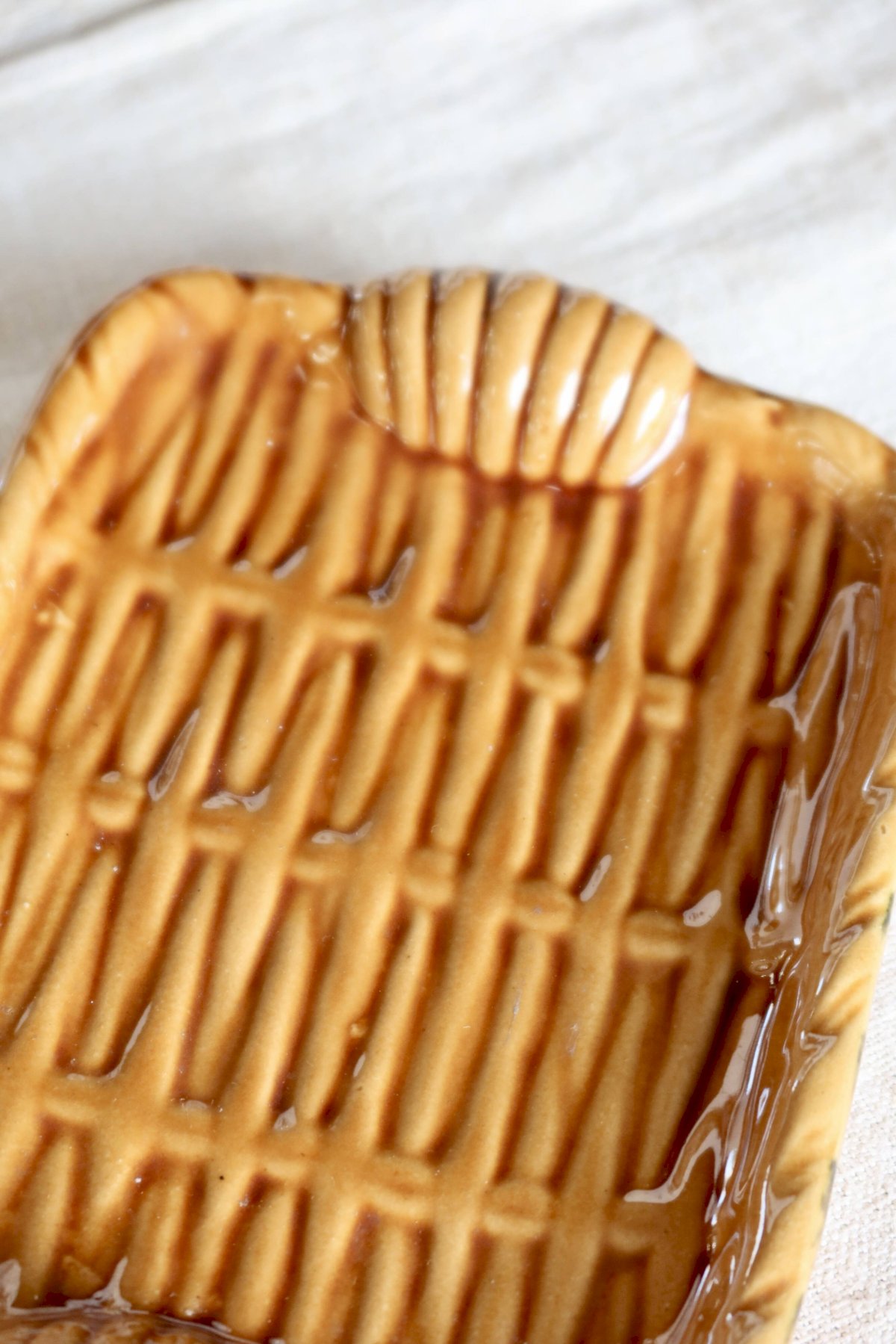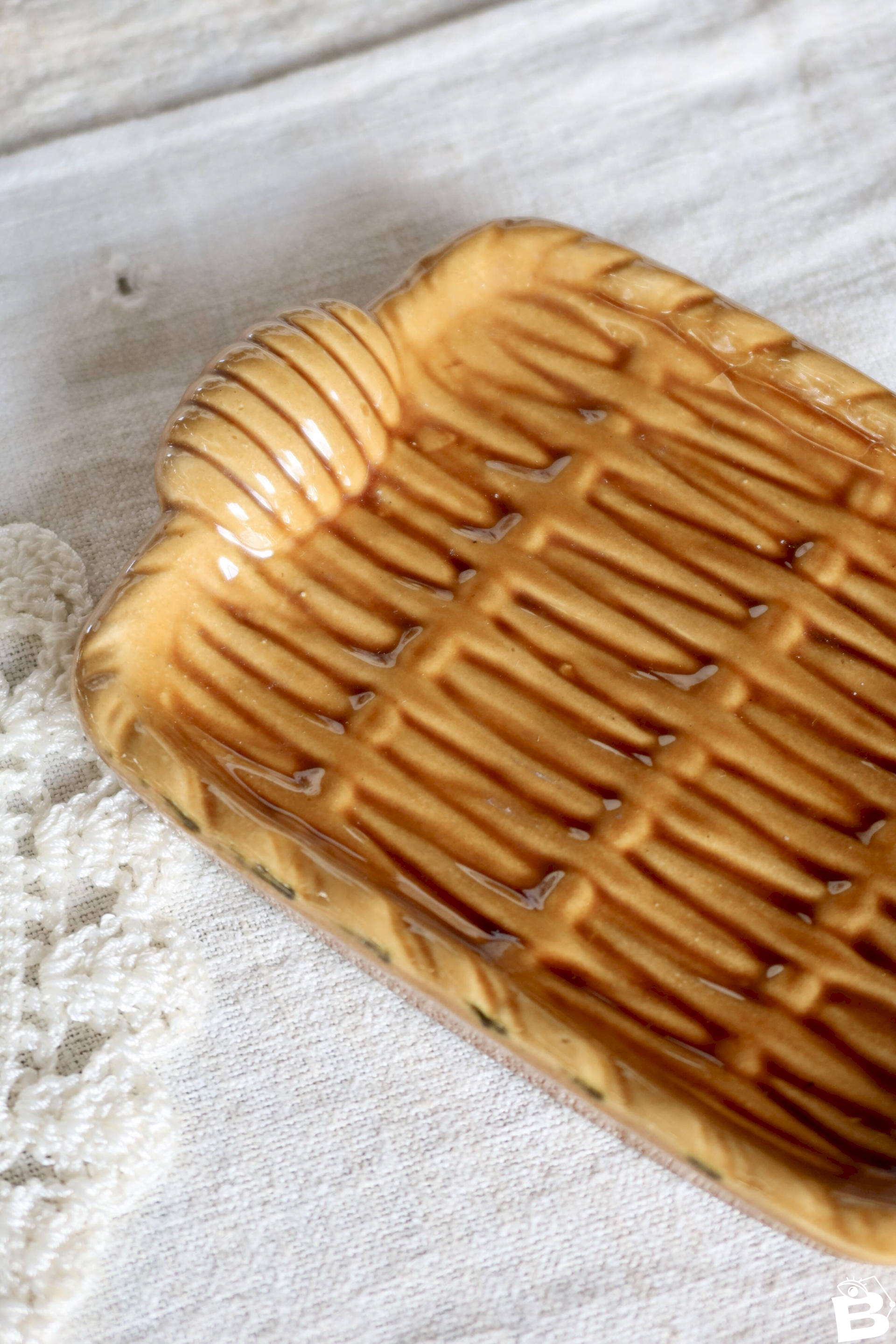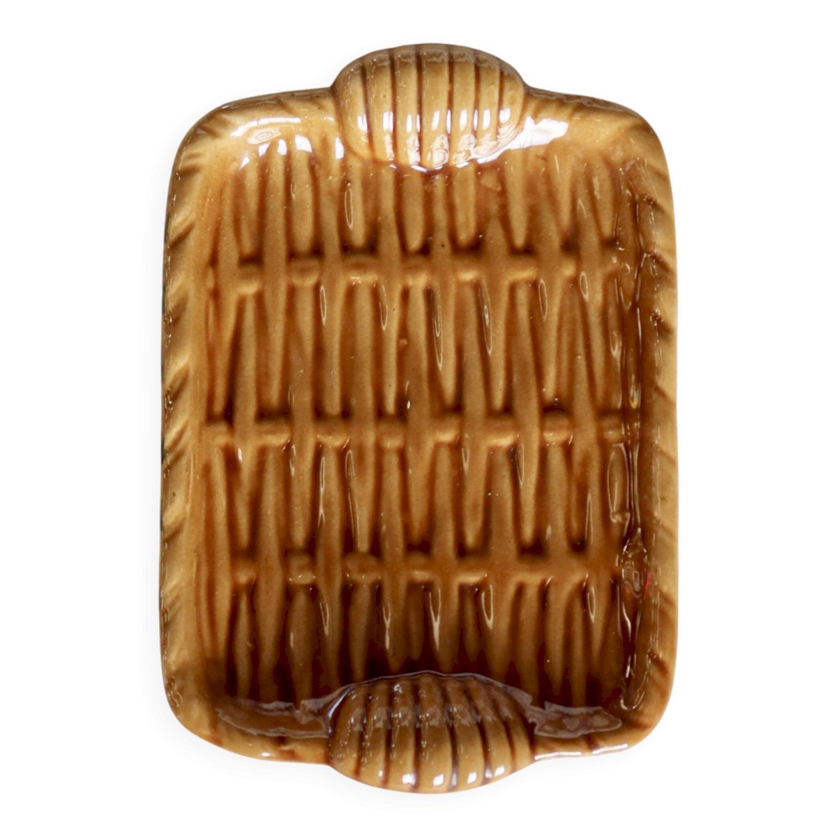 Vide-poche vintage en céramique couleur moutarde effet tressé