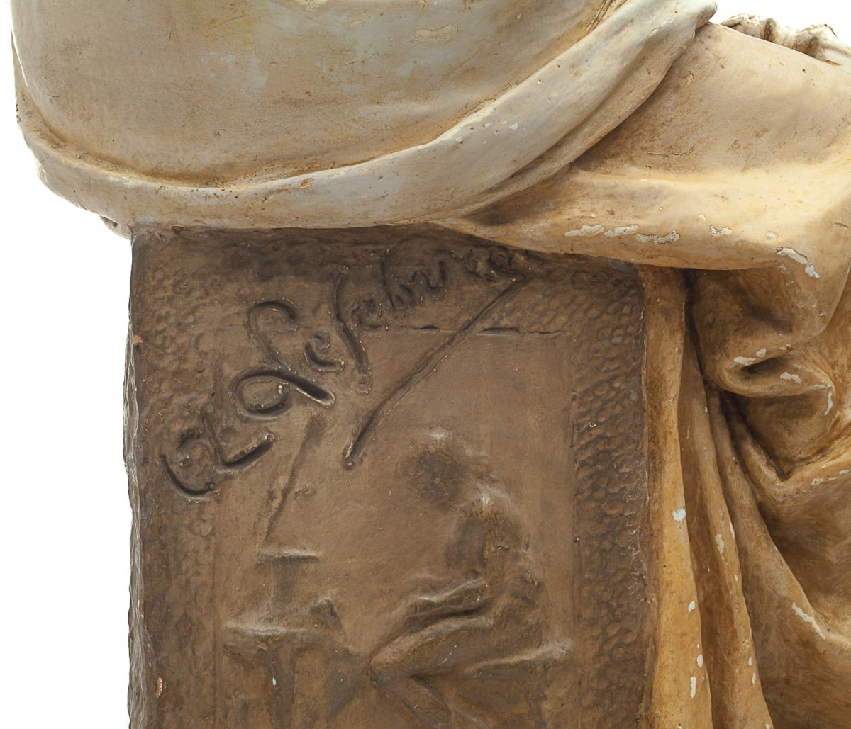 Statue en plâtre peint « Vierge à l’enfant » de Adelaïde Maeterlinck-Lefebvre (1860-1940)
