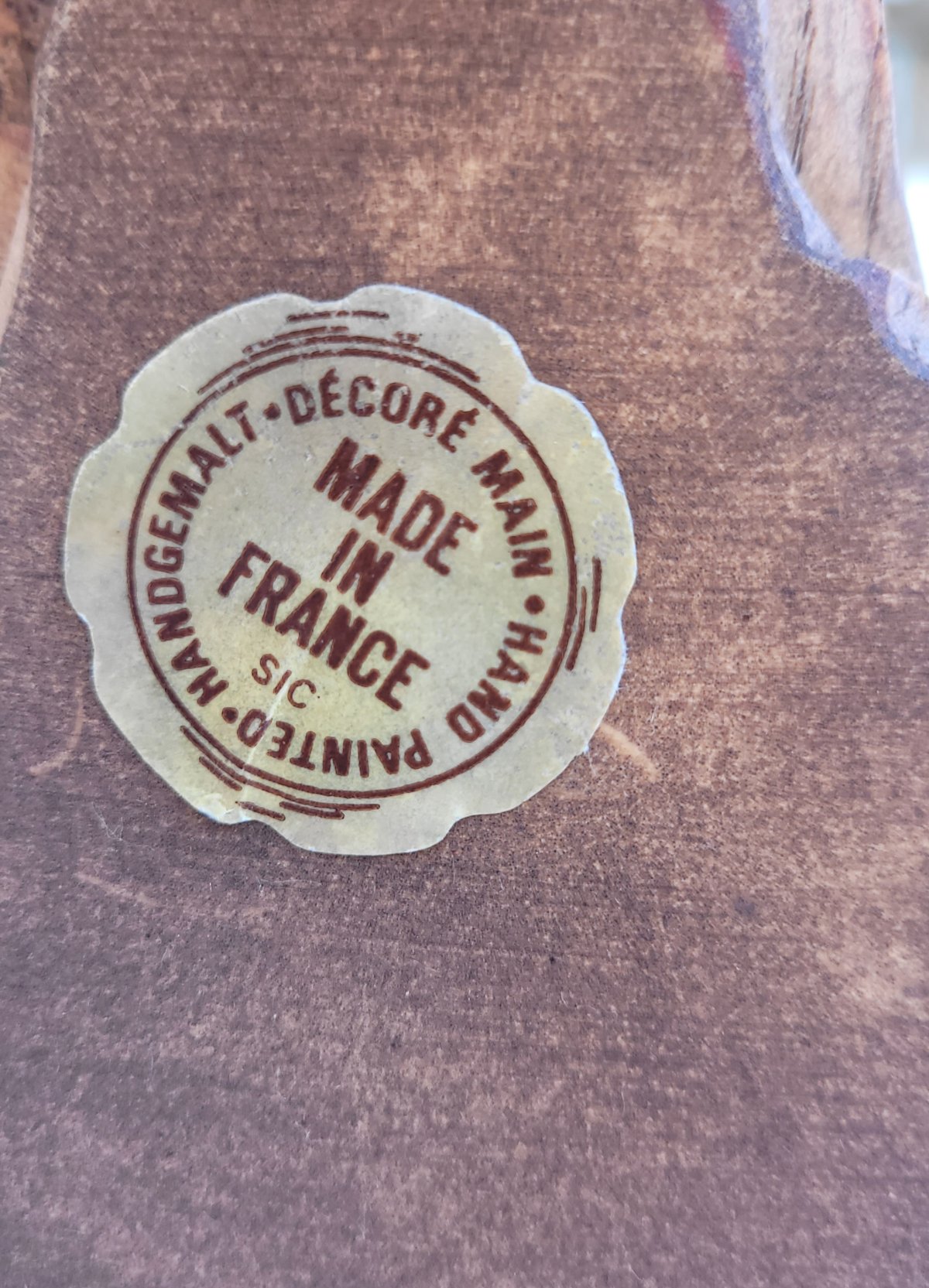 Magnifique statuette murale en bois et celluloïd (protégée contre les insectes et champignons) , milieu XX ème, sculptée et peinte à la main, estampillée SIC ( Alain Sicouly).