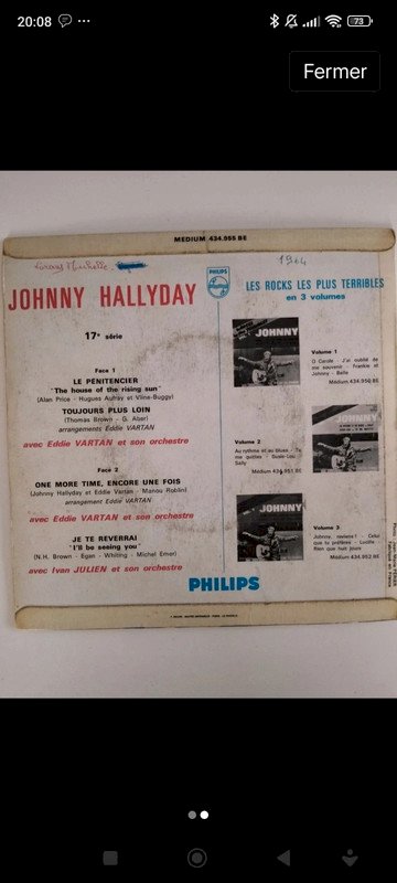 Vinyle 45 tours Johnny Hallyday le pénitencier