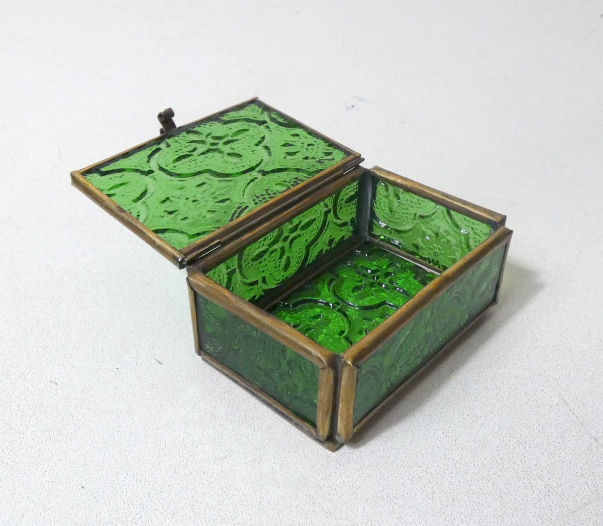 vitrine coffret boite à bijoux en verre et laiton green box vintage