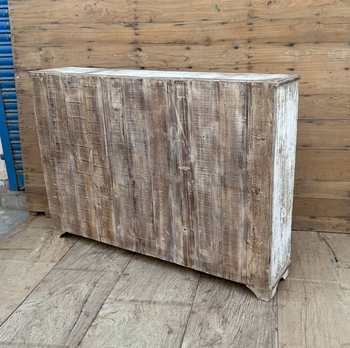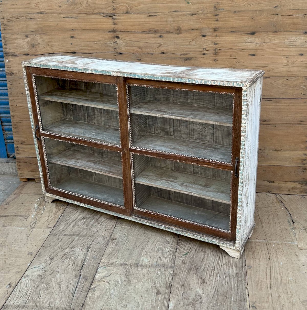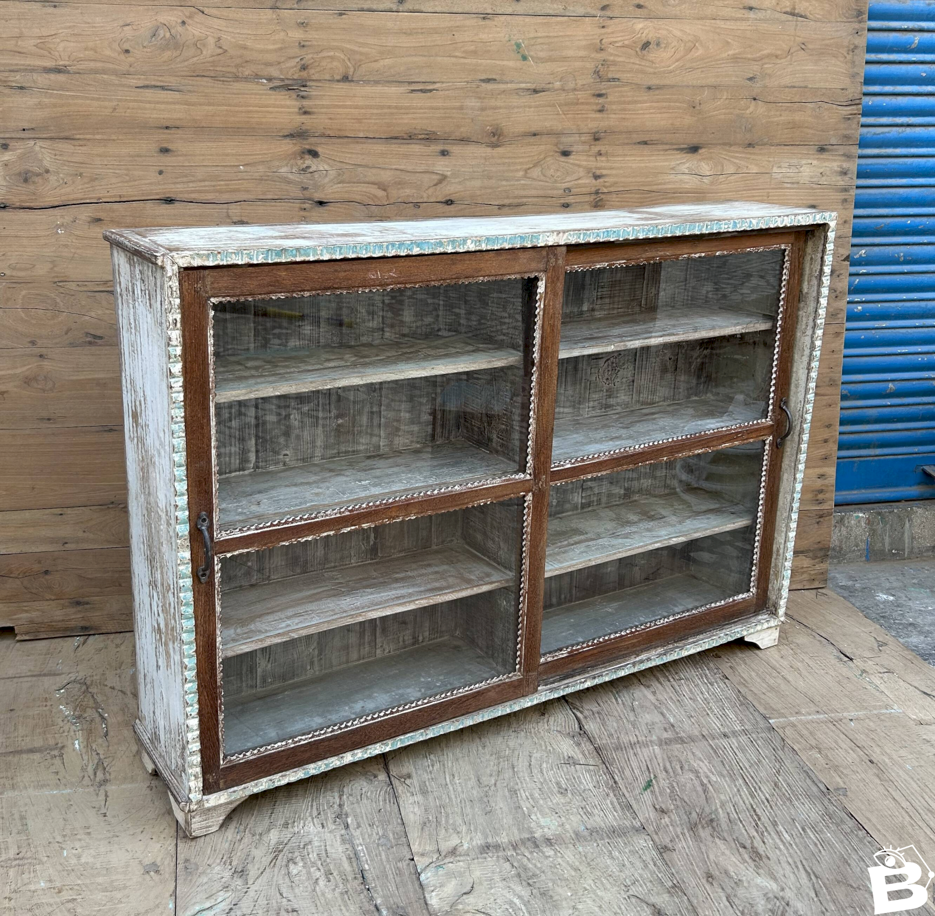Vitrine en teck birman avec portes coulissantes Ethnique Blanc Bois