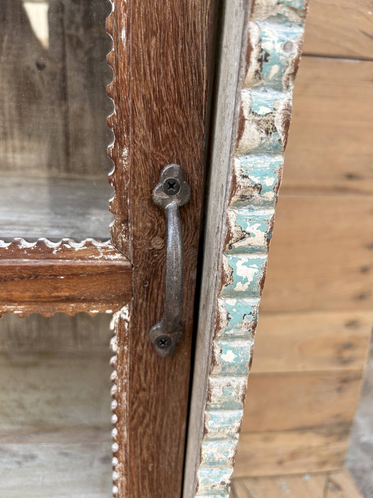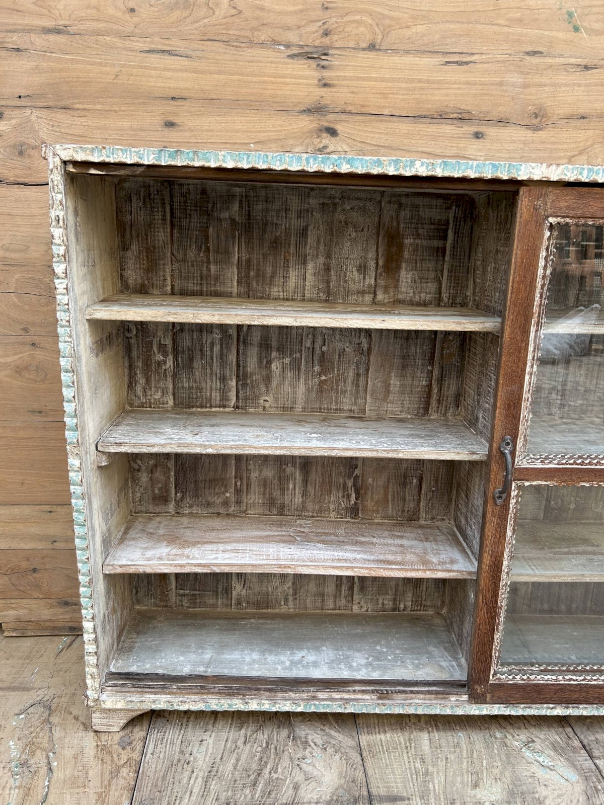 Enfilade vitrée en teck birman avec patine turquoise dorigine