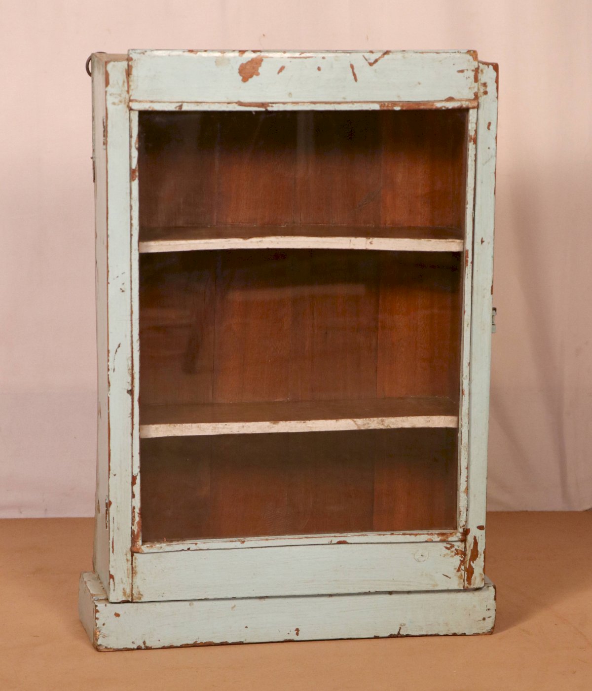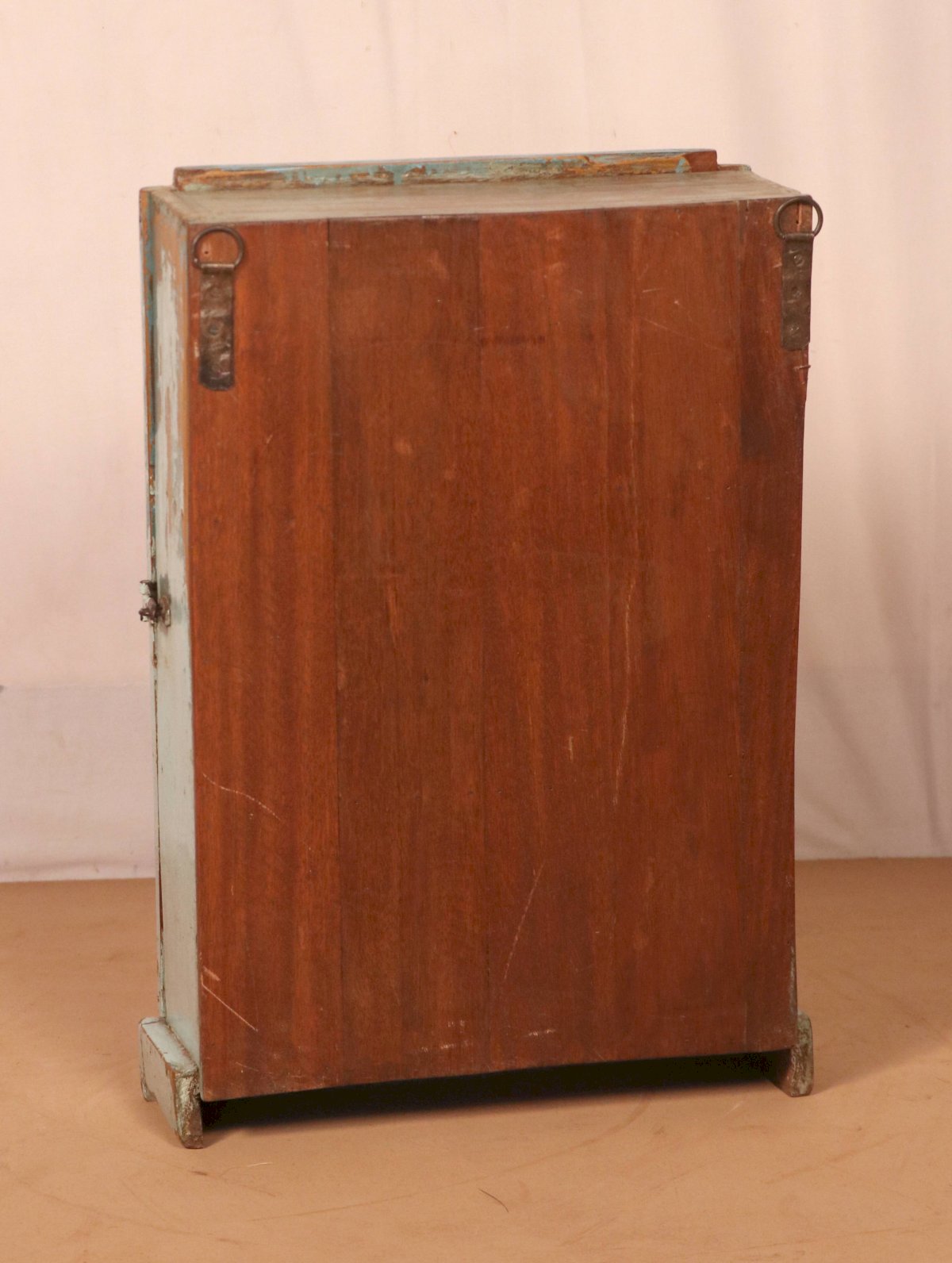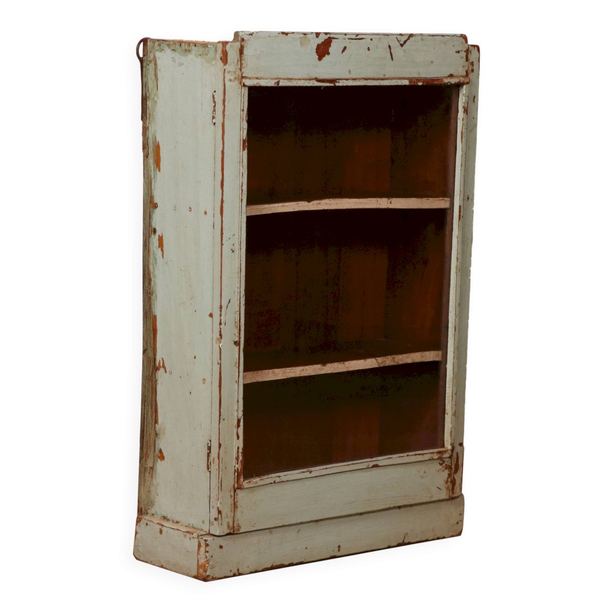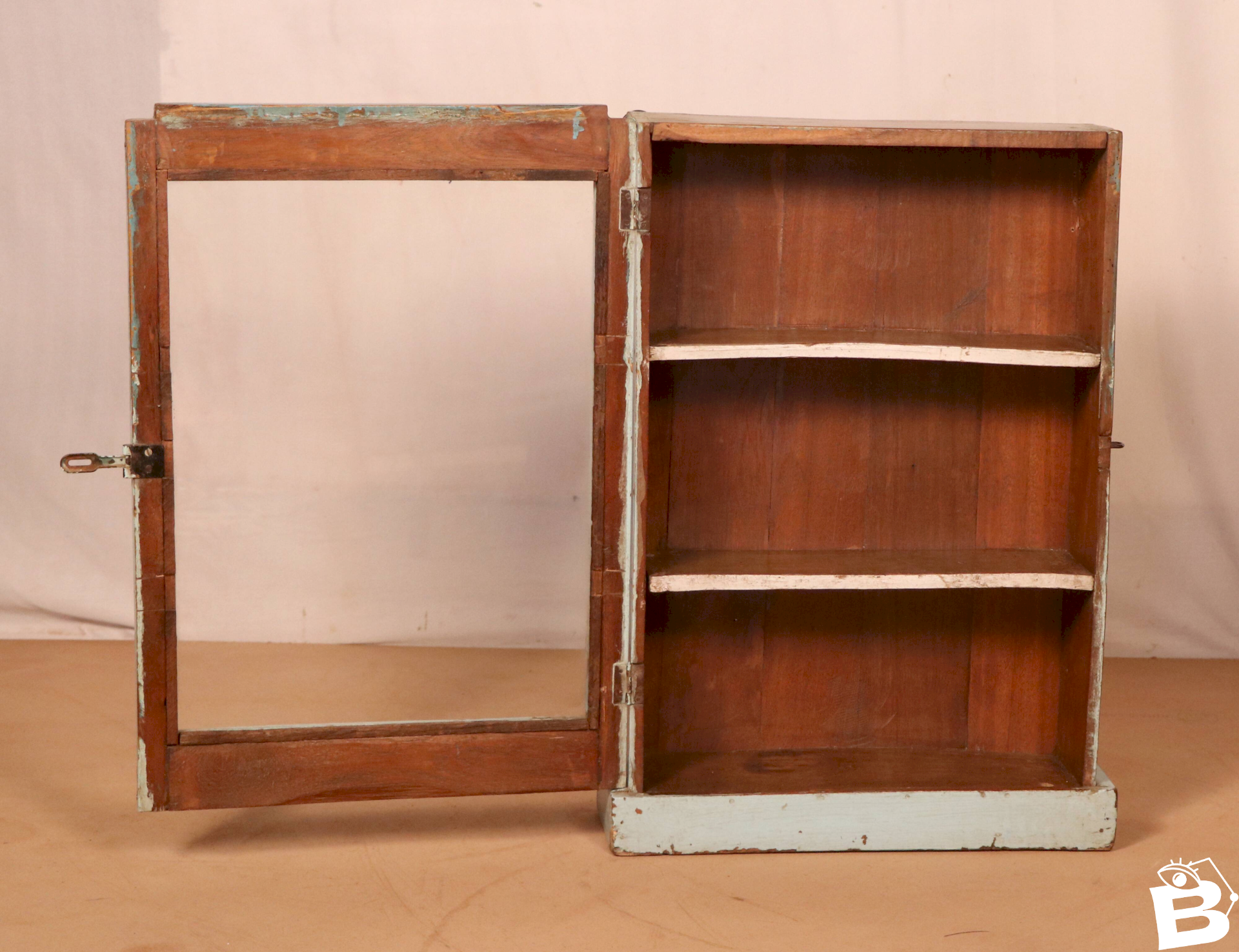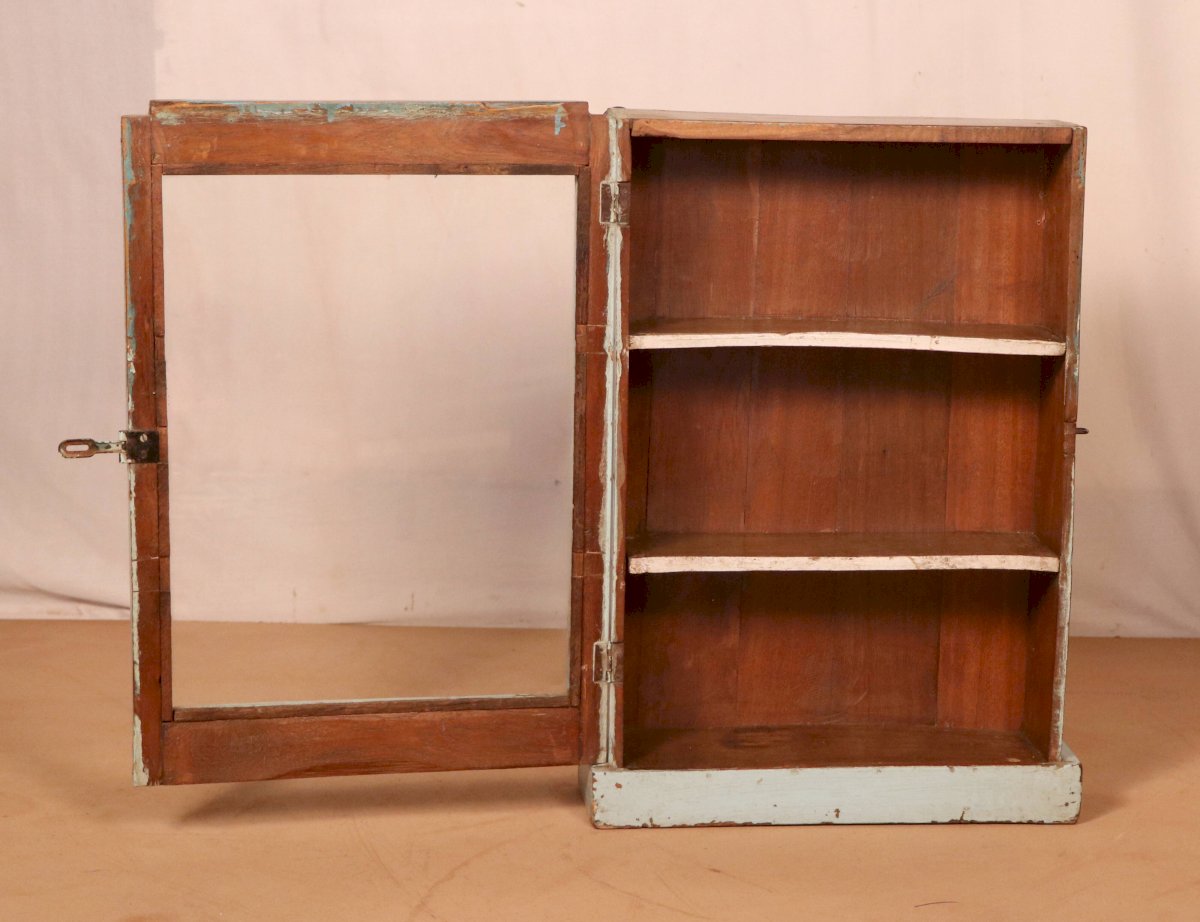 Ancienne vitrine murale art déco en teck birman patine bleue d’origine