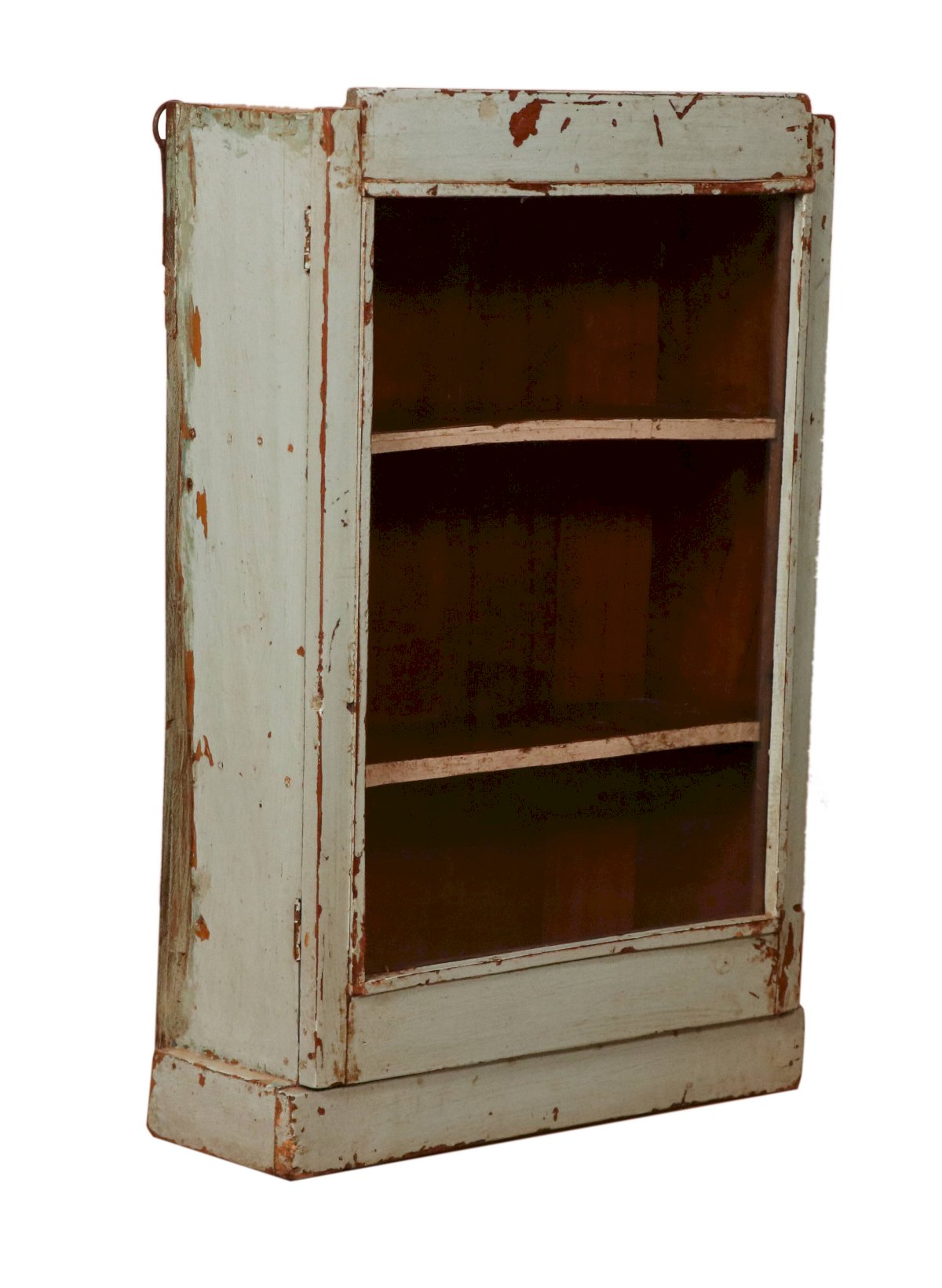 Vitrine murale Art déco en teck birman / patine bleue-grise d'origine / 2 accroches à l'arrière pour fixation /40 x 15 x 61 cm - 7 kg / haut int de H en bas : 16 / 17 / 16 cm