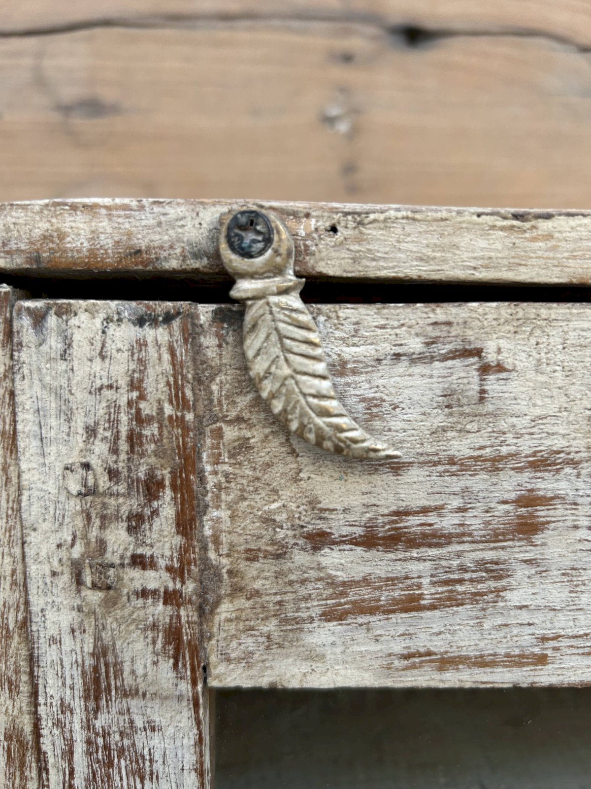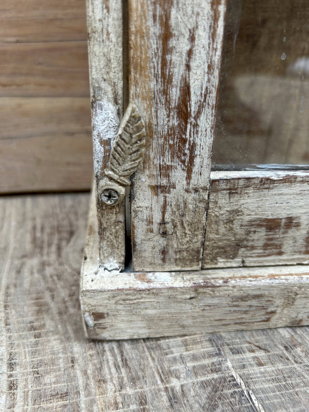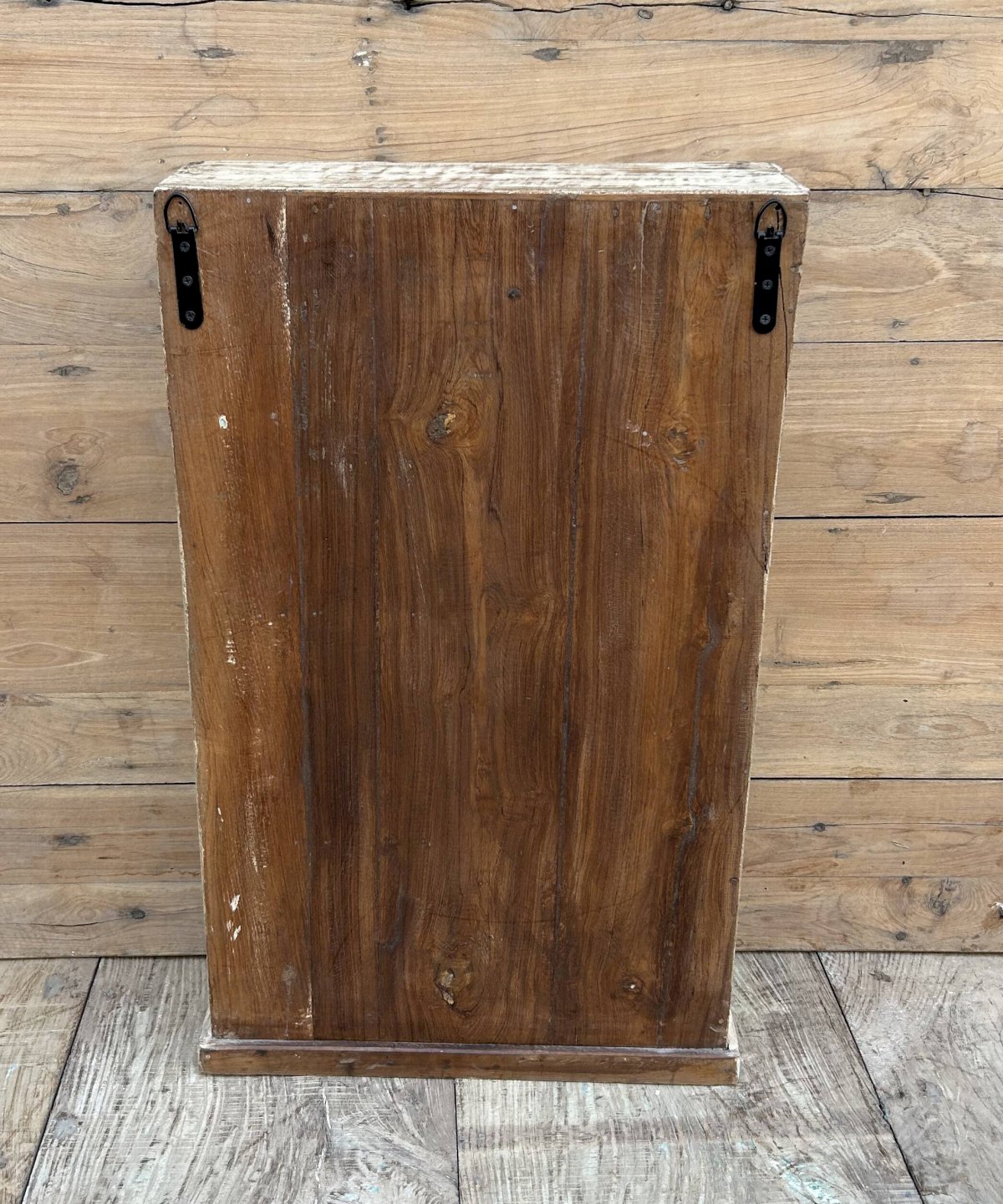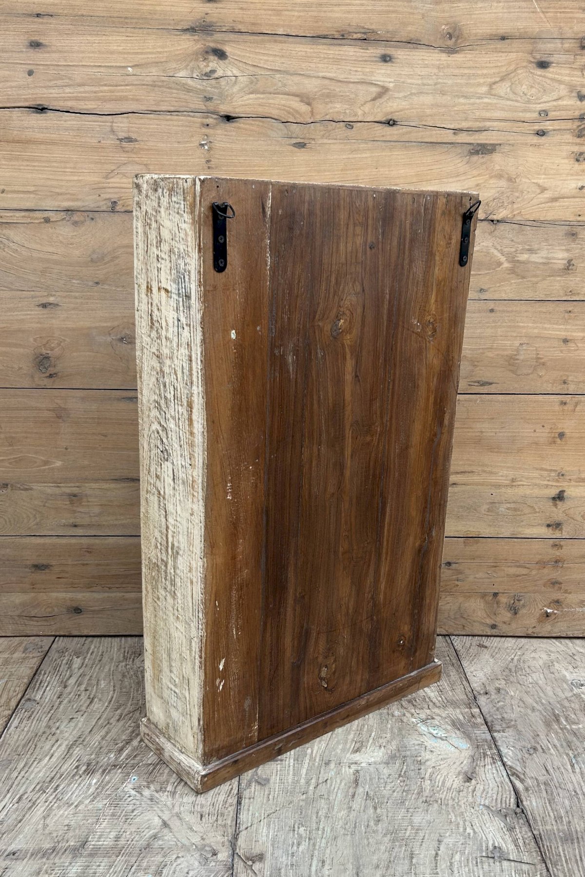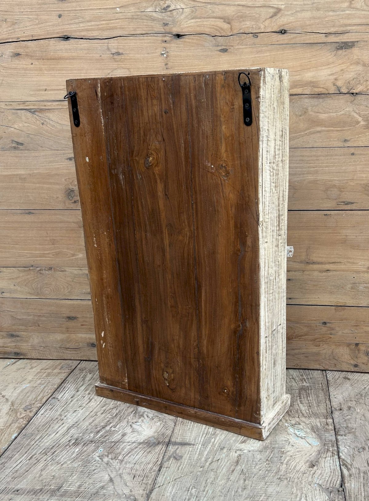 Vitrine murale en teck birman avec patine dorigine Ethnique Blanc Bois