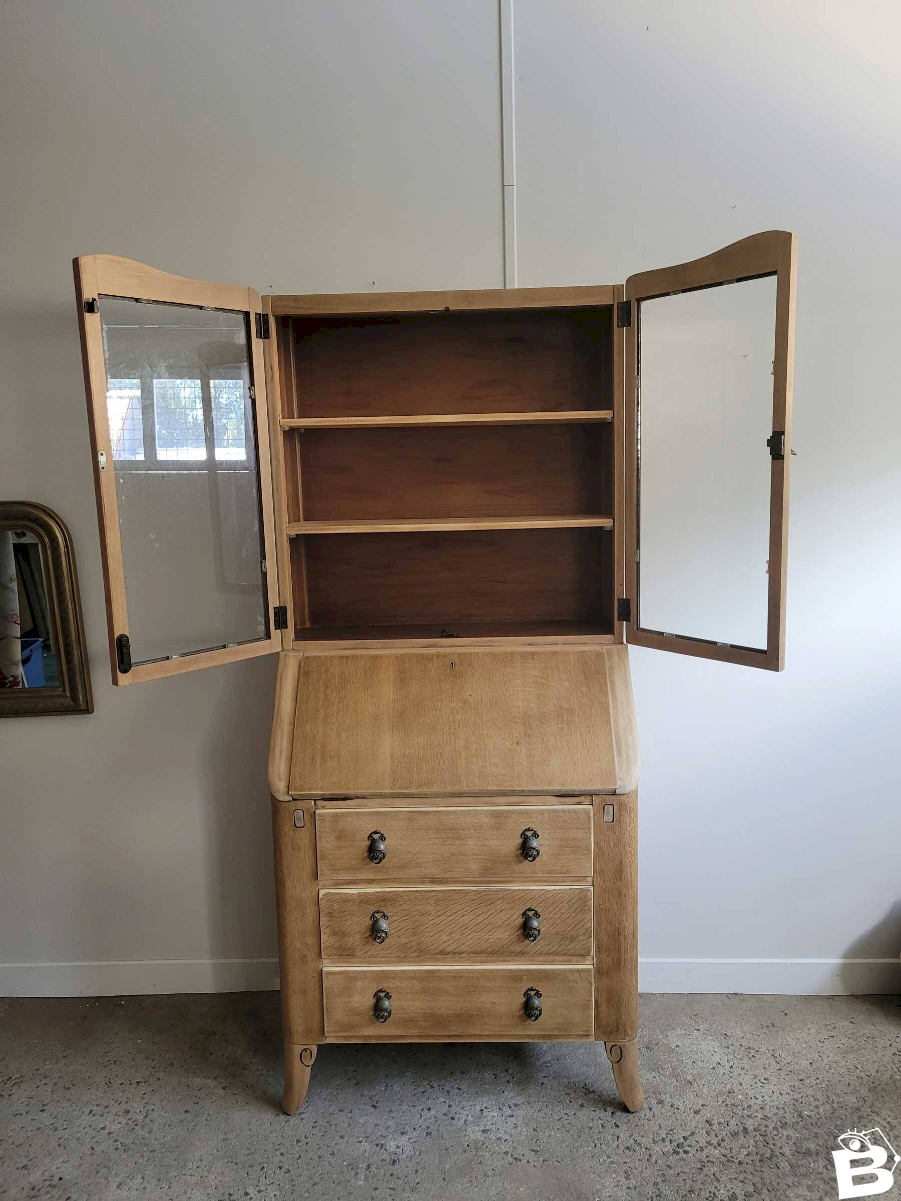 Coup de cœur de Bits and Bobs pour ce superbe scriban anglais ! La teinte claire du bois et ses lignes courbes lui apportent beaucoup de douceur.